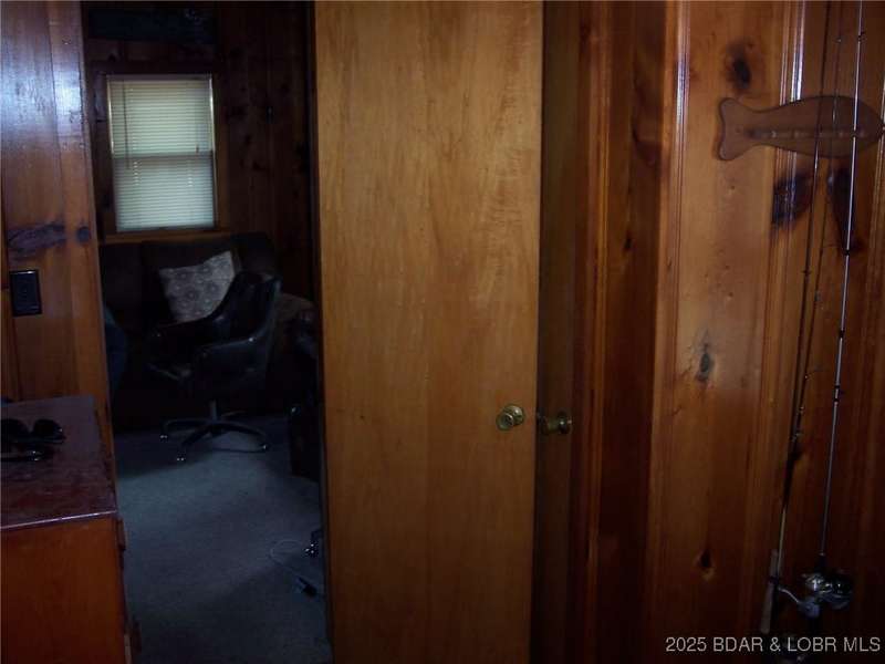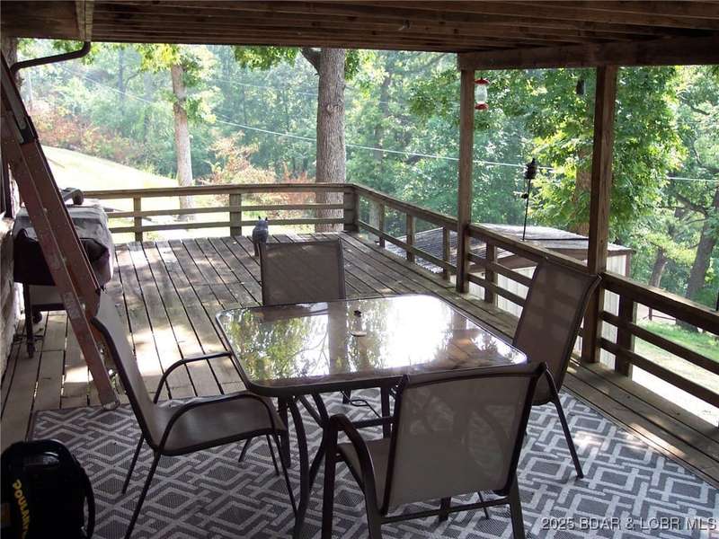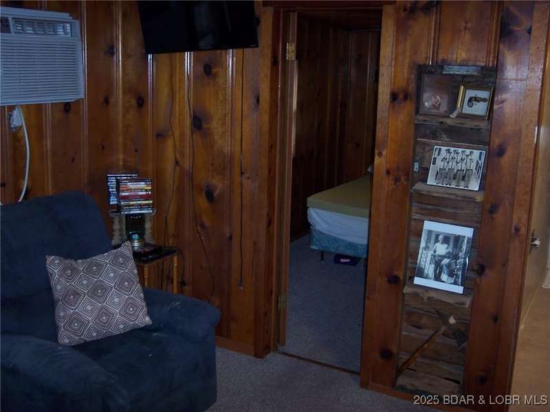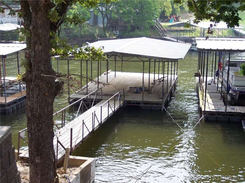 View of the 34MM of Lake of the Ozarks. 2BR/1 bath home features new metal roof, stone exterior and huge covered deck which has amazing views of the lake. Nice area close to shopping and the bars. Knotty pine interior gives this home that rustic feel. This home includes a 10x24 covered boat dock. This home will not last!