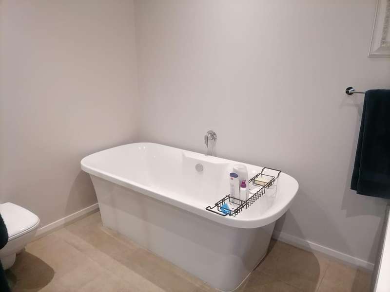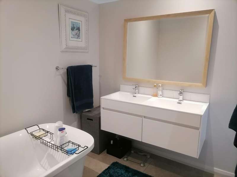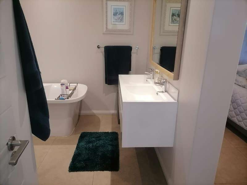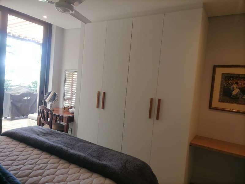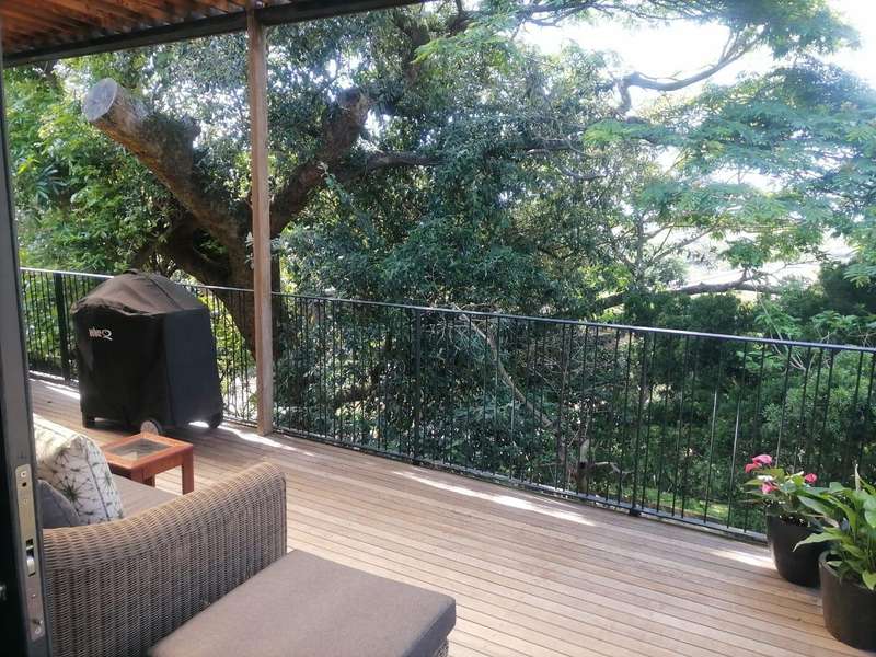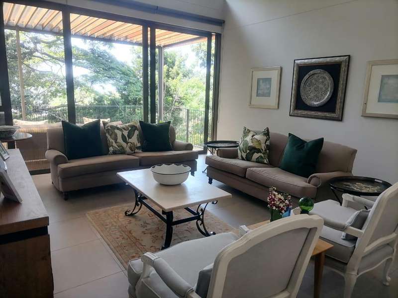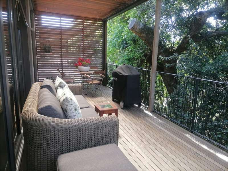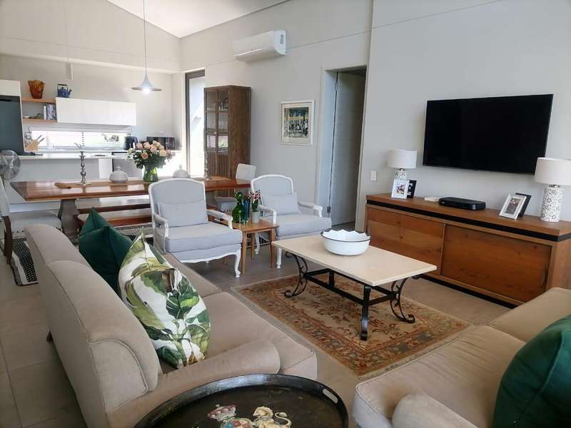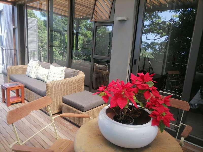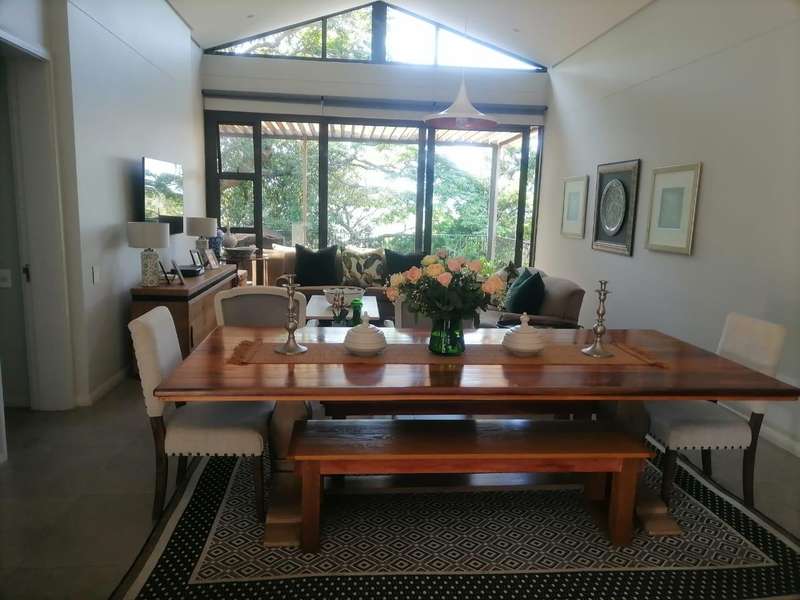 This 3-bedroom, 2-bathroom home in Brettenwood Coastal Estate offers contemporary, open-plan coastal living enhanced by double-volume ceilings and a sleek, custom-designed kitchen. The spacious lounge opens directly onto a floating decked patio, creating a tranquil, treehouse-like entertainment space. The smart layout ensures privacy, with the master suite separated from the two guest bedrooms. Perfect as a lock-up-and-go, the home includes a double garage and air conditioning. Residents enjoy world-class security and access to estate amenities like the Woodlands Clubhouse (restaurant and gym), pools, fishing dams, and scenic walking trails.