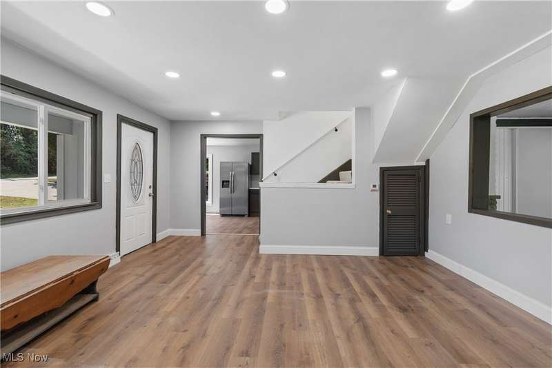 Completely remodeled from top to bottom, this one-of-a-kind home offers modern updates, a unique and flexible layout, and 2.27 acres of peaceful property in the desirable Manchester Local Schools district with the newly built high school nearby. The spacious covered front porch welcomes you inside to a warm and inviting living room featuring a cozy wood-burning fireplace. Just off the living room is a den or office, offering a versatile space to work or relax. A first-floor bedroom and updated full bath make a great guest or in-law area. The eat-in kitchen has been fully updated with stainless steel appliances and stone countertops and connects to a mudroom/laundry area conveniently located near the side entrance. A few steps down, you'll find a freshly finished family room with a charming book nook that kids will love. Upstairs, the expansive primary suite features a private full bath and access to a balcony overlooking the wooded backyard, perfect for morning coffee or evening unwinding. The suite leads to a huge bonus room that could be used as a walk-in closet, home office, or nursery. Two to three additional bedrooms complete the second floor. Recent updates (2024-25) include a new well, flooring, light fixtures, paint, water supply manifold, several windows, new garage doors and openers, a new attic furnace; newer septic system, and a five-year-old lower-level furnace and water heater. With all the major updates complete, you can simply move in and enjoy the holidays in this truly special home.