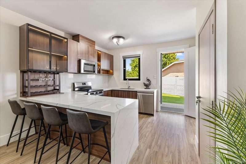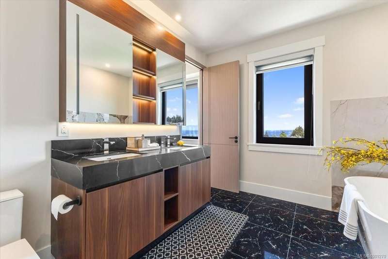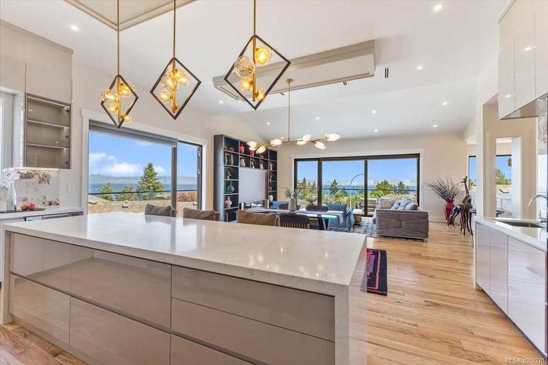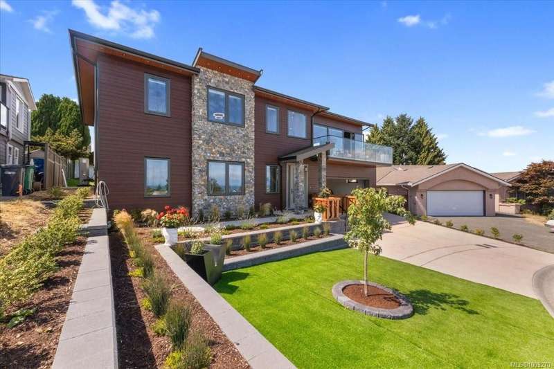 This stunning home in North Nanaimo offers incredible ocean views and endless flexibility. With 5 bedrooms and 6 bathrooms, this spacious home is perfect for large families or multi-generational living. The main kitchen features high-end appliances, elegant fixtures, and beautiful finishings throughout. A second kitchen on the upper level offers added convenience and suite potential. Enjoy the coastal views from multiple vantage points, including a rooftop patio—perfect for relaxing or entertaining. Thoughtful updates and quality craftsmanship make this home move-in ready. Located on a quiet cul-de-sac near top-rated schools, shopping, restaurants, parks, and beaches, everything you need is just minutes away. Whether you're looking for space, style, or income potential, this home truly has it all. Don't miss your chance to own a piece of paradise in one of Nanaimo's best neighbourhoods. Plus GST. All measurements are approximate and should be verified if important.