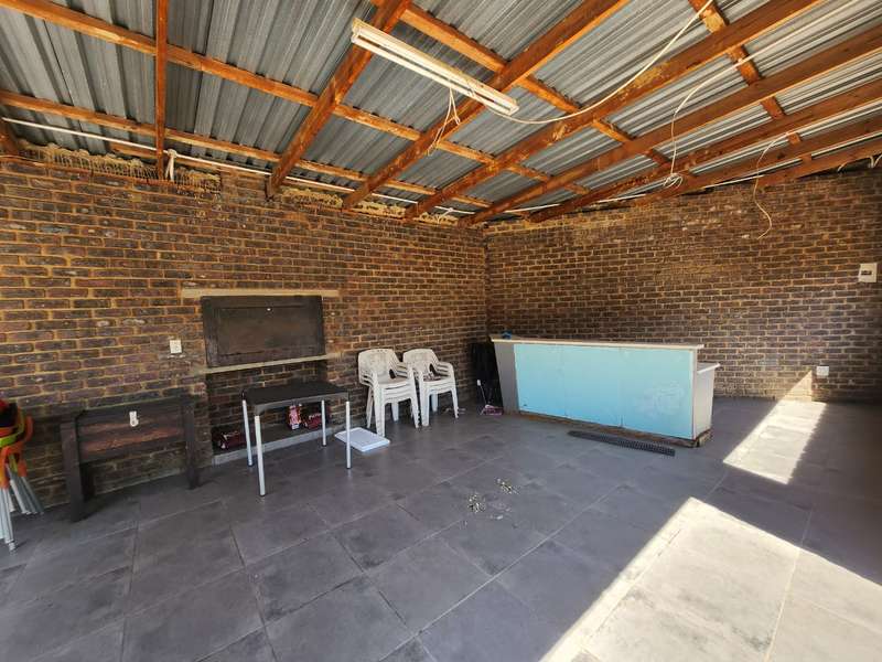 RNS MANDATE This versatile and well-appointed property is perfect for a large family or for those seeking additional rental income. It boasts an array of features that cater to comfort, convenience, and entertaining. Main House Features: • Bedrooms: 4 generously sized bedrooms, all with built-in cupboards. • Bathrooms: 2 bathrooms, including a modern en-suite to the main bedroom. • Kitchen: Fully equipped with built-in cupboards, a hob, and an eye-level oven—ideal for the home chef. • Living Spaces: o A cozy lounge. o A dining room for family meals. o A family room with a fireplace for those chilly evenings. Attached Flatlet: • Bedroom: 1 spacious bedroom. • Bathroom: Modern and functional. • Kitchen: Neat and practical—perfect for guests, extended family, or rental income. Outdoor Features: • Courtyard: Includes a built-in braai, perfect for weekend gatherings. • Entertainment Area: Features a swimming pool (currently being renovated) and ample space for outdoor entertaining. • Flatlet: A separate 1-bedroom flat with its own bathroom and kitchen, offering additional rental potential or accommodation. • Storage: Convenient outdoor storage space for tools or equipment. • Carport: A lock-up carport with space for up to 4 cars. • Gate: Secure motorized gate for added peace of mind. This property is a must-see for anyone looking for space, versatility, and a home with character. Whether for family living or as an investment, it ticks all the right boxes. ? Contact us today to schedule a viewing!