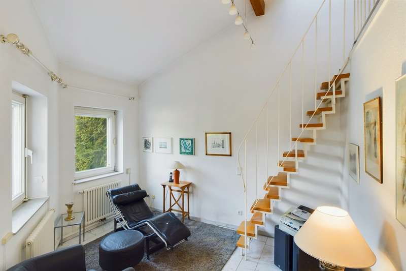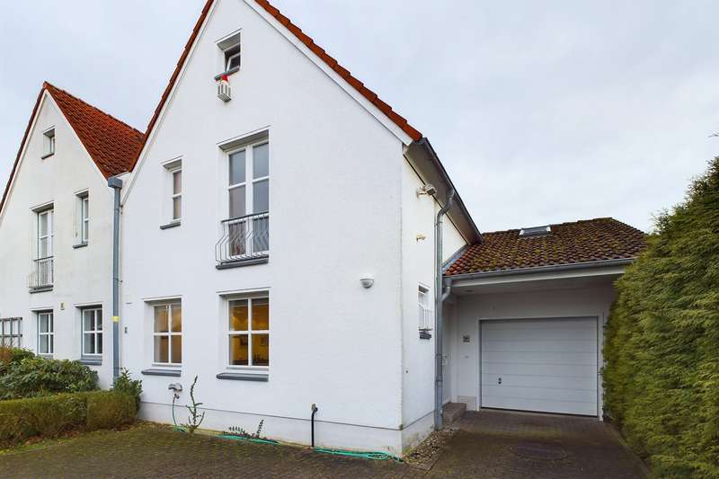 A well-maintained terraced end-terrace house, built in 1994, is for sale and impresses with its well thought-out room layout and high-quality furnishings. The property extends over a living space of approx. 164 m² on a plot of approx. 269 m². It offers a total of four well-designed rooms, including two bedrooms and a bathroom. Upon entering the house, you are greeted by an inviting hallway that provides access to all the main areas on the first floor. The guest WC is directly adjacent. The modern fitted kitchen flows seamlessly into the dining area and creates a spacious connection to the living area. The well thought-out room design creates a bright and friendly living ambience. From the living area, you have direct access to the terrace with awning - the perfect place to enjoy sunny days. An adjoining gallery room ideally rounds off the first floor and offers versatile usage options. The gallery in the study gives the house an open and airy feel. The two bedrooms are located on the upper floor. The master bedroom has an en suite bathroom. The dressing area can be accessed directly from there. A further bedroom rounds off the space on this level. The converted attic can be reached via a separate entrance. It houses the boiler room and another room that can be used flexibly as a small guest room or storage space. The heating system was last modernized in 2010 and the central heating guarantees an efficient heat supply. The condition of the house is very well maintained and the normal quality of the fittings throughout the property leaves room for individual adaptations, so that future owners can easily realize their personal ideas and wishes. A spacious garage right next to the house provides convenient parking and additional storage space. The proximity to transport links and good infrastructure access make this property an ideal home for couples or small families who value a quiet yet well-connected residential location. Excellent shopping facilities, schools and kindergartens are available in the immediate vicinity, making everyday life easier and the house an attractive choice for different lifestyles. Take the opportunity to get to know this interesting property in person. We cordially invite you to view the property and see for yourself. Contact us at any time for further information or to arrange a viewing.