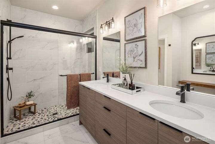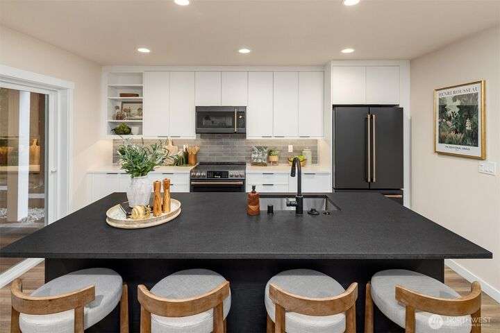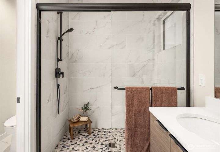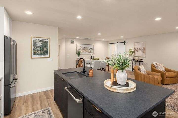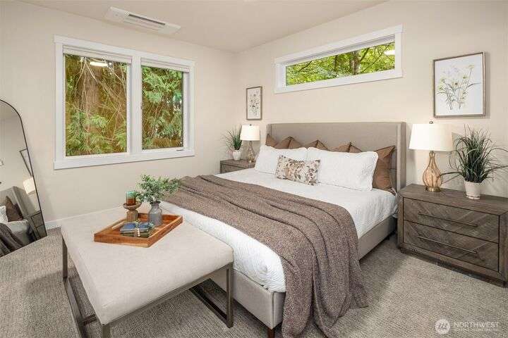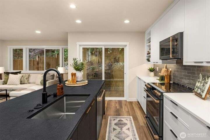 From trusted local builder Collz Inc, this 4-bedroom Matthews Beach home stands out with its hard-to-find EV-ready 2-car garage. Set on a quiet street, the open main floor features a chef’s kitchen with island seating and high end Café appliances, flowing to the generously sized dining and living areas. Sliders open to a patio and fenced yard framed by mature landscaping. Upstairs, the primary suite is a private retreat, joined by three bedrooms, full bath, and laundry room. Thoughtful touches—mini-splits, custom blinds, washer/dryer—make it move-in ready. Blocks to Matthews Beach Park with quick access to SR-522 & I-5.