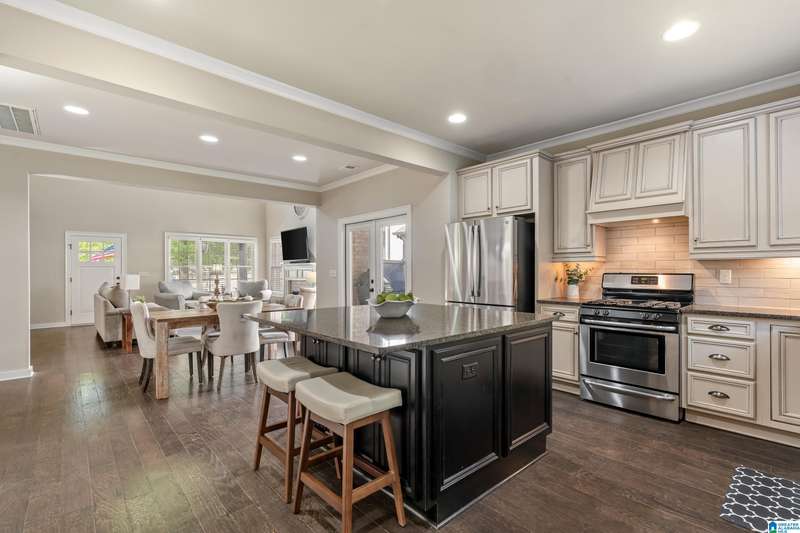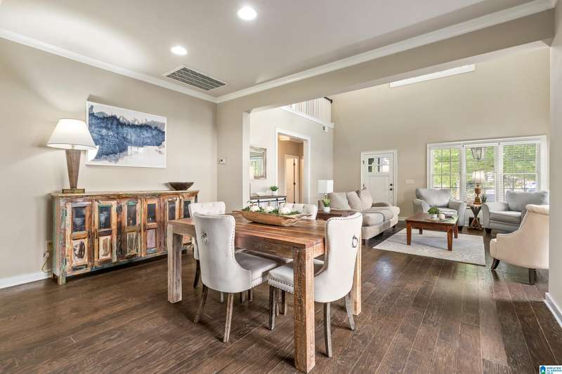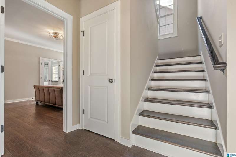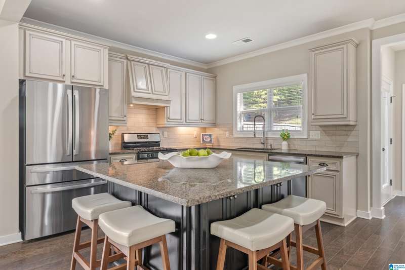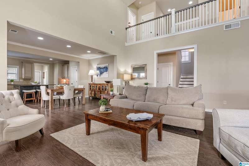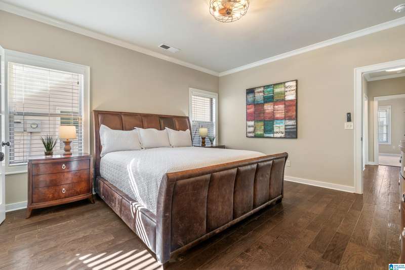 Welcome to 4295 Abbotts Way, in the sought-after Hamptons neighborhood of Ross Bridge. This beautifully maintained 4-bedroom, 3-bath home in Northampton offers a functional layout with two bedrooms and two full baths on the main level. The main living area flows into an inviting eat-in kitchen with granite countertops, large center island, gas stove and stainless steel appliances. The main-level primary suite features hardwood floors and a luxurious bath with double vanities, double shower, soaking tub, walk-in closet, and separate linen closet. The main level also includes a second bedroom, full bath, and laundry room. Upstairs are two additional bedrooms and a third full bath, providing flexible space for guests, work, or hobbies. Enjoy the flat, fenced backyard, perfect for relaxing or entertaining, just steps from the Hamptons pool, greenspace, whiffle ball field, sidewalks, and other Ross Bridge amenities.