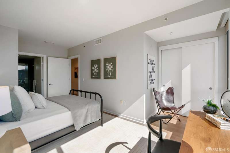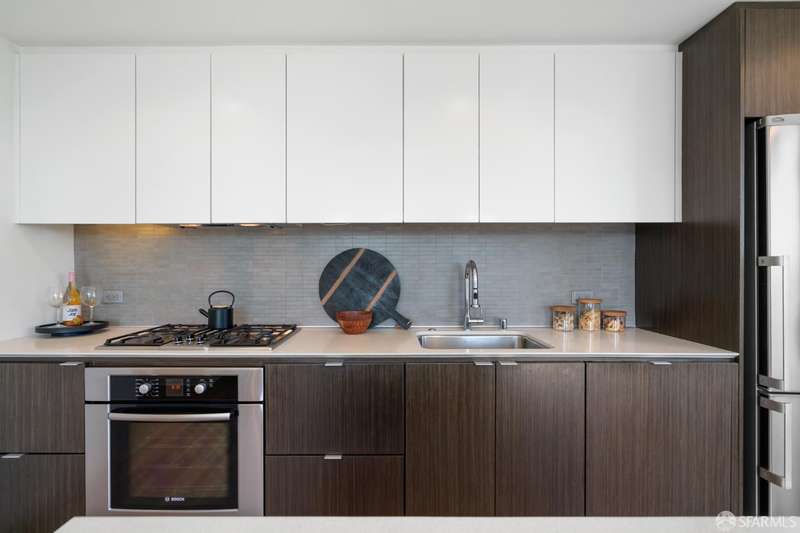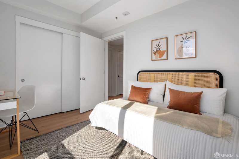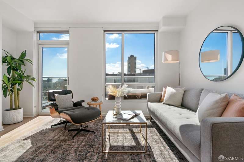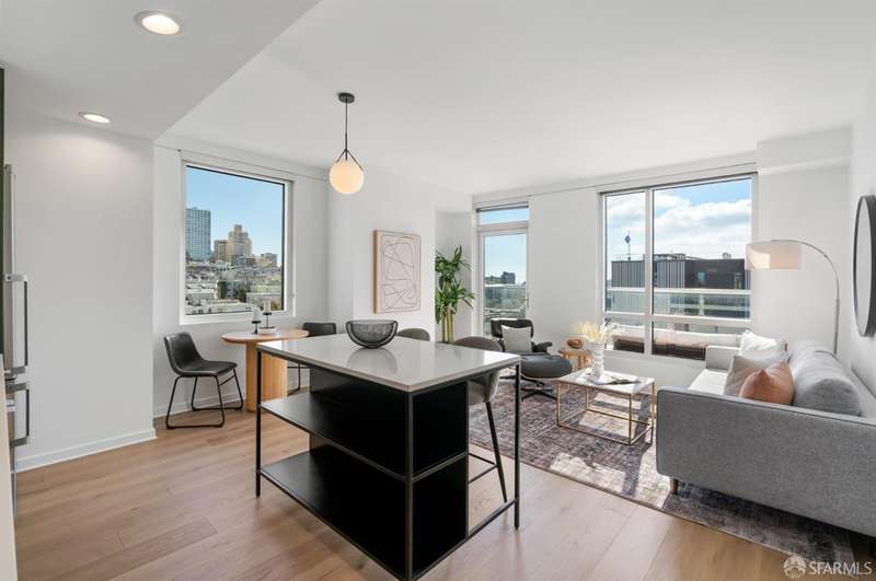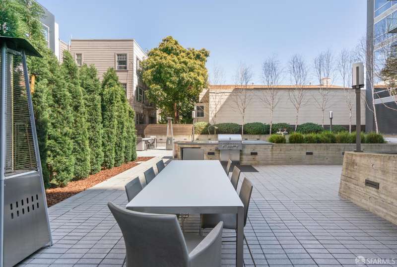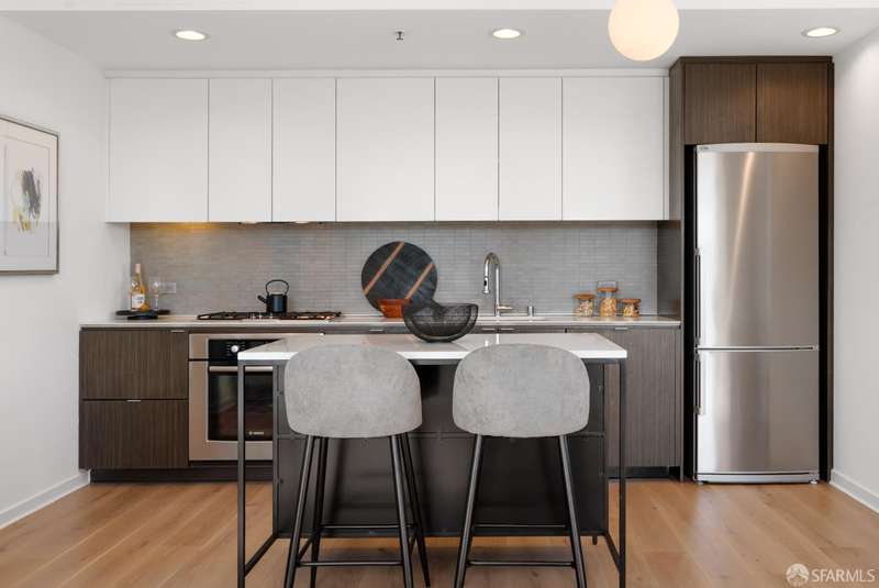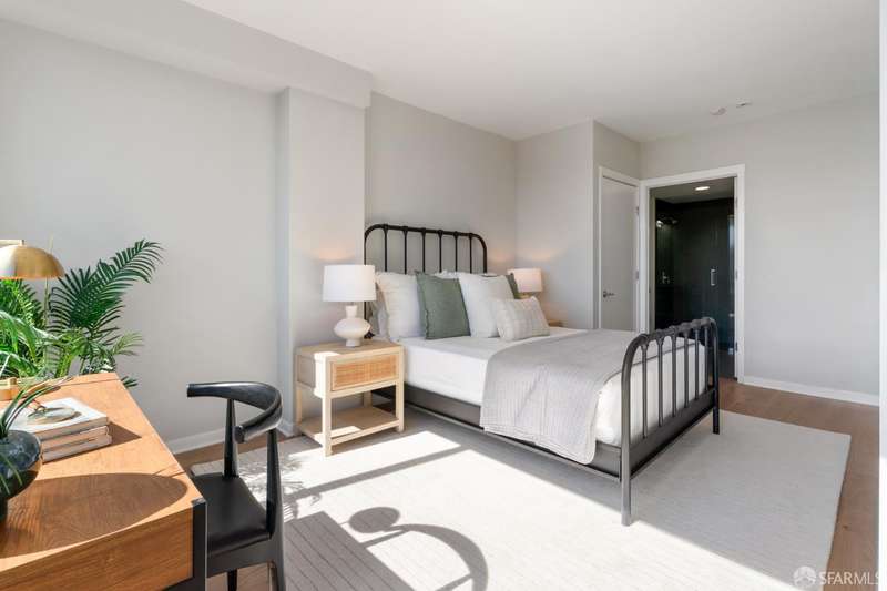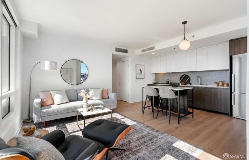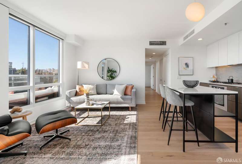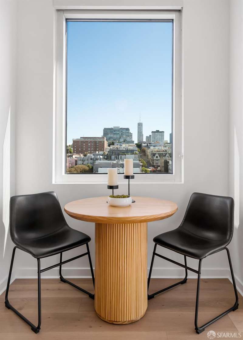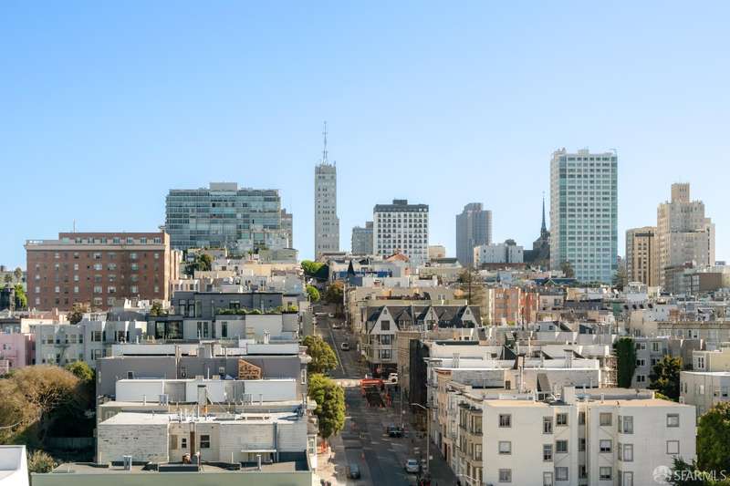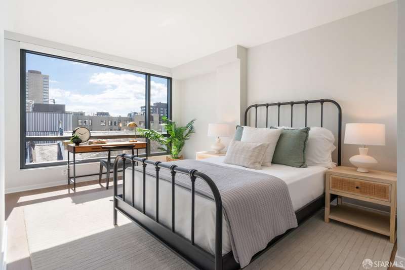 Welcome to The Marlow - a sophisticated blend of timeless elegance and modern luxury at the crossroads of Nob Hill, Russian Hill, and Pacific Heights. This hand-selected 2BD/2BA residence offers refined design, a smart layout, and an unbeatable location. Perched on a high floor, it's filled with natural light from floor-to-ceiling windows and showcases sweeping city views. The open-concept living space includes a chef's kitchen, custom cabinetry, new wide-plank white oak floors, quartz countertops, stone tile backsplash, and premium stainless steel appliances with gas range. The kitchen flows into the dining area and spacious living room, opening to a massive private balcony ideal for coffee, evening relaxation, or entertaining. The serene primary suite features two closets and a spa-inspired ensuite bath. The second bedroom is perfect for guests, a home office, or den. Additional features include central A/C, in-unit laundry, and deeded parking. Marlow amenities include a secured lobby with doorman, landscaped courtyard, outdoor lounge with fire pit, bocce court, and BBQ area. Just steps from Whole Foods, tech shuttles, and vibrant Polk Street shops and cafes, this home offers the best of city living.