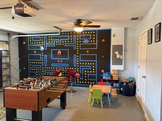 Welcome to Westridge! This well maintained 4-bedroom, 2.5-bathroom pool home offers versatility-perfect as a primary residence, vacation retreat, or short-term rental investment. With no rear neighbors (unless you count the local wildlife), you'll enjoy serene views of the pond and wooded conservation area from your backyard oasis. Step inside to a warm living/dining room that flows seamlessly into the family room and kitchen, creating an inviting and functional floorplan. The kitchen features a breakfast bar and cozy kitchenette, ideal for casual dining or accommodating extra guests. The family room overlooks the pool and connects directly to the first-floor primary suite, where you can wake up to peaceful pond views. The ensuite bath offers a garden tub, separate shower, water closet, and dual vanities. Upstairs, you'll find three additional bedrooms and a full guest bath, ensuring space and privacy for everyone. Entertainment is never far away-whether it's enjoying the screen-enclosed pool, challenging friends to a game of foosball or darts, or relaxing in the Pac-Man themed garage. The community also offers a variety of amenities including tennis courts, playground, volleyball and basketball courts, soccer field, and a community pool. Located just a short drive from world-famous theme parks, golf courses, shopping, dining, and all that Davenport has to offer, this home checks every box for comfort, convenience, and fun. Don't wait-schedule your private showing today and make this Westridge gem yours!