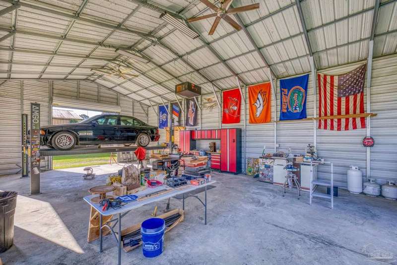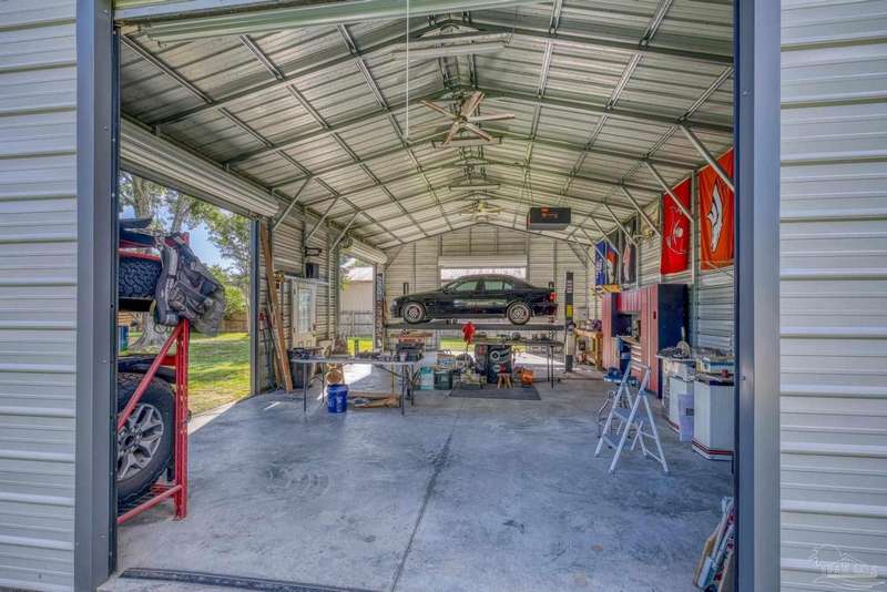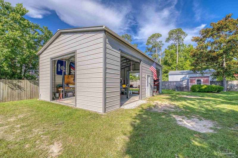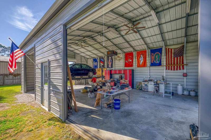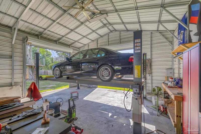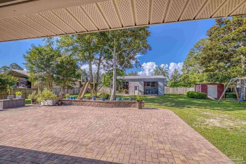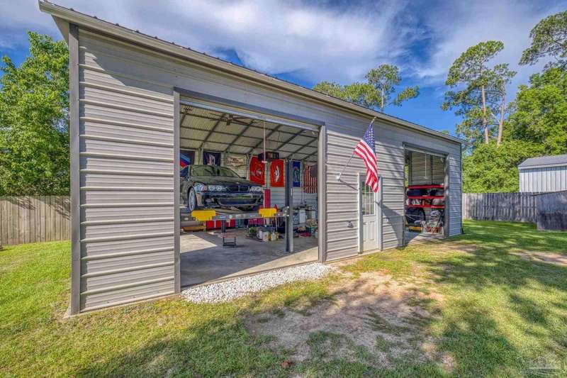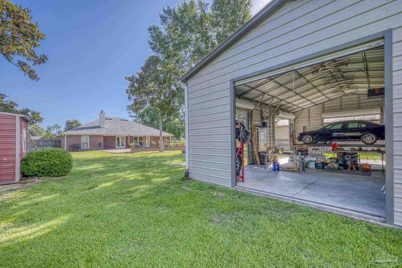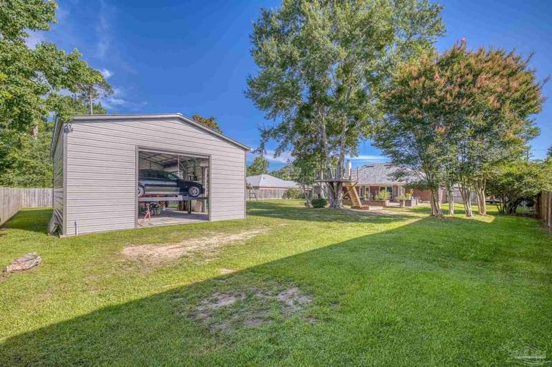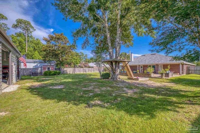 Discover comfort, flexibility, and room to grow in this well-cared-for 4-bedroom, 2-bath brick home, offering 2,090 square feet of thoughtfully designed space on a .525-acre lot. With no HOA and no rental restrictions, this property is a rare opportunity for both homeowners and investors. Inside, you're welcomed by a light-filled formal dining room with charming bay windows-fantastic for everyday meals or special gatherings. The living room centers around a cozy wood burning fireplace, creating a warm and inviting space. The adjacent eat-in kitchen features a breakfast bar, ample cabinet storage, and stainless steel appliances, making it as practical as it is welcoming. A spacious laundry room with built-in storage keeps daily life running smoothly. The primary suite is tucked away in its own private wing and offers tray ceilings, room for a sitting area, a large walk-in closet, and a spa-like ensuite bath with a modern double vanity, tiled walk-in shower, soaking tub, and built-in speaker system for added luxury. The remaining three bedrooms are located in their own wing and share a full bathroom-ideal for family or guests. Step outside to a backyard built for both play and productivity, featuring a partially covered paved patio, sandbox, tree house and swing set. A highlight of the property is the 960 sq ft workshop, which includes a car lift that conveys, fantastic for hobbyists, mechanics, or extra storage. An additional storage shed adds even more utility. For enhanced security and peace of mind, the home is equipped with a professionally installed ADT security system and a Lorax camera system, with cameras strategically placed at the front door, living room, back patio, and driveway-all of which convey with the home. With thoughtful upgrades, security features, and no HOA restrictions, this property offers the ideal blend of freedom, functionality, and comfort-ready for you to make it your own.