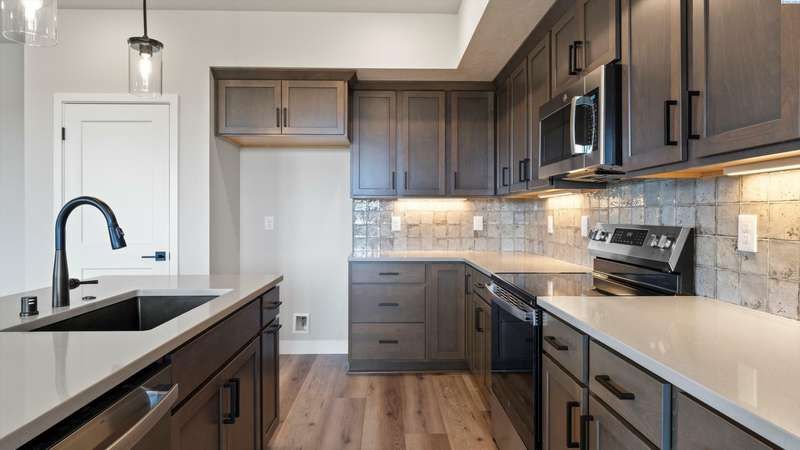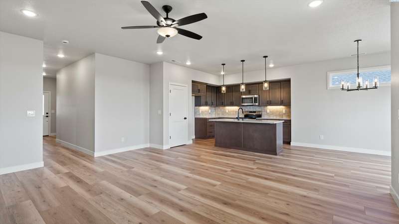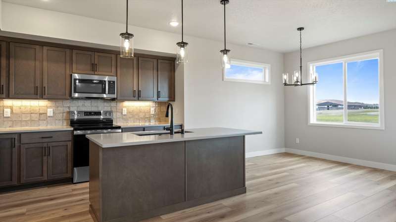 MLS# 284204 Reata Road to Southgate, right on Morningside Parkway, right on Tarragon Avenue. Welcome to this stylish Tanninen Home on a gorgeous lot in the desirable South Orchard neighborhood of Badger Mountain South! Don't miss this 1496 square foot home that includes 3 bedrooms and 2 baths. It features a large owner's suite with a barn door leading to a spacious bathroom with tile shower and Delta fixtures. Enjoy the well designed kitchen with GE appliances, soft-close Huntwood cabinets, quartz countertops and a large kitchen island. The kitchen opens to the great room featuring an modern, electric fireplace with tile surround and ceiling fan. A sliding door opens to the spacious back yard which backs up to a green belt, providing beauty and privacy. This home includes front and back landscaping with an underground, timed sprinkler system. You will love the detail in this quality-built Tanninen home! The expanding neighborhood has great views of Badger Mountain and the nearby hills.. and AMAZING sunsets! It's great for walking, with plenty of sidewalks and walking paths. Enjoy great freeway access to Kennewick and Richland. Come check out all that South Orchard and Tanninen Homes have to offer!