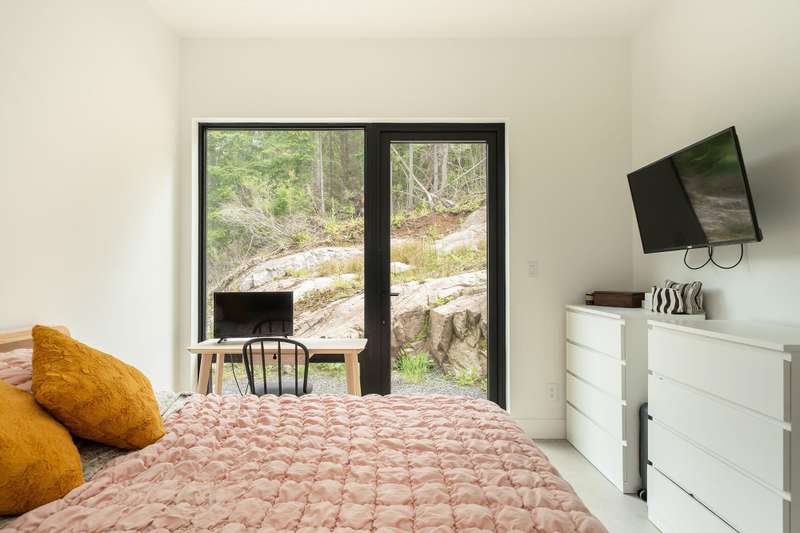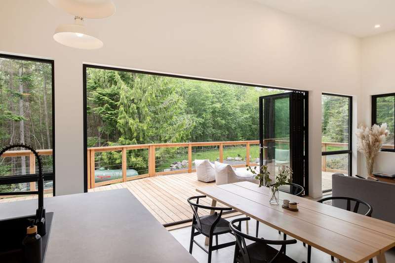 Endless possibilities here on this 1.7 acre sunny property with a new compact & energy-efficient home. Clear Cedar siding, a metal roof with rainwater collection, & high-end glazing combine to create a stylish, environmentally conscious abode. 5-panel accordion doors open to a deck overlooking a picturesque meadow. Services are at the base of a roughed-in driveway that leads to a build site for a second dwelling. The 3 bed, 2 bath home features 10’-12’ ceilings & 1165 sq.ft. of living space all on one level. On-demand hot water supplies radiant heat for the concrete floors throughout the home. Roman Clay, a sleek, eco-friendly plaster finish, is showcased on the walls of the luxurious primary ensuite. Located next door to Headwaters and Quarry Parks, with hours of hiking at your doorstep.