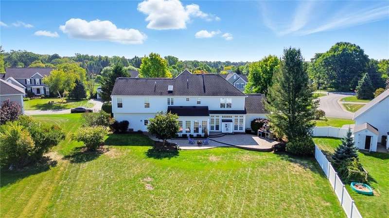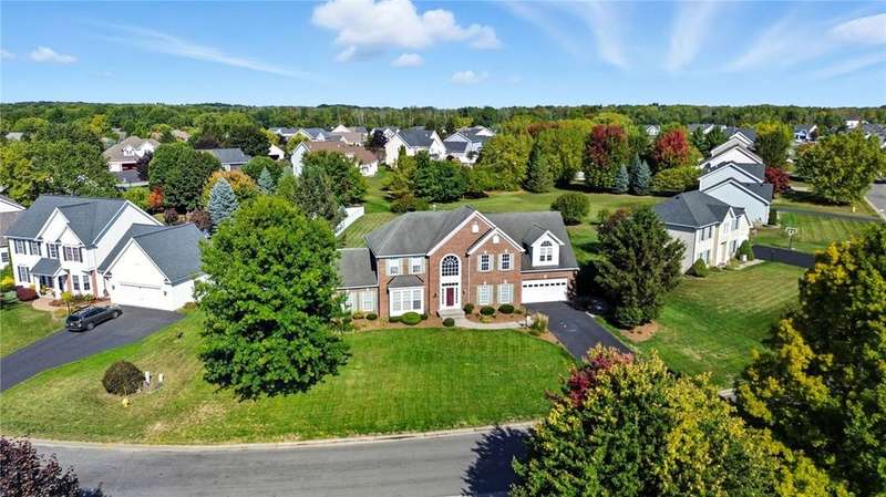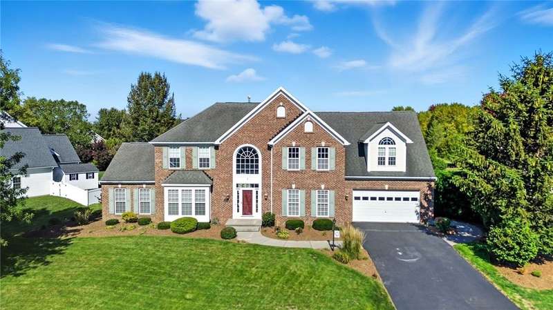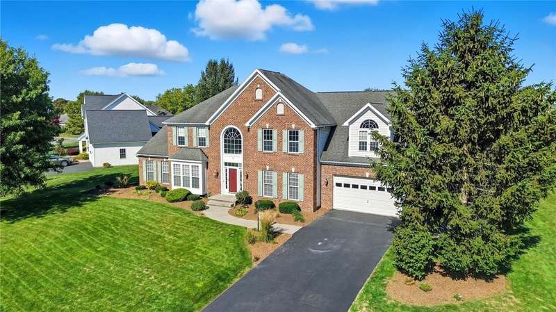 Showings to start on Saturday 9/20 12-3, Public open house Sunday 9/21 12-2, Showings Monday 9/22 2-5, Tuesday 9/23 10-2, Wednesday 9/24 3-7 and all offers due Thursday 9/25 at 2 pm with a 24 hour response time.Incredible over 3700 sq ft home in Newbury Park subdivision. Built in 2000 was a builder model offers 4 huge bedrooms, the primary suite has enormous floor space, his and her closet and wonderful primary bath. The 3 additional bedrooms are all ample in size and offer hardwood floors, the main bath has been updated. The primary suite has brand new carpeting, first floor has 6 rooms and a half bath. As you enter this majestic home the two story foyer sheds a ton of light and welcomes you into a wonderful floor plan. On the left you have your front formal living room that leads to a front to rear office/den/study with full wall floor to ceiling bult in book shelves, wood floors, tons of windows and high ceilings. From there it leads to the family/great room offering a gas fireplace flanked by windows, again hardwood floors and opens to the huge kitchen that has tons of cabinets, center granite island with 4-6 seating capacity granite counters and opens to your breakfast room that overlooks your 1/2 acre rear lot, totally neutral interior allows for easy selection for your own color palate. The exterior is brick and vinyl and the rear lot has a custom paver patio. LL is ale to be finished. Home offers natural sunlight and soaring ceilings. Lush landscaping surrounds the exterior, oversized 2.5 car garage. Close to all amenities.