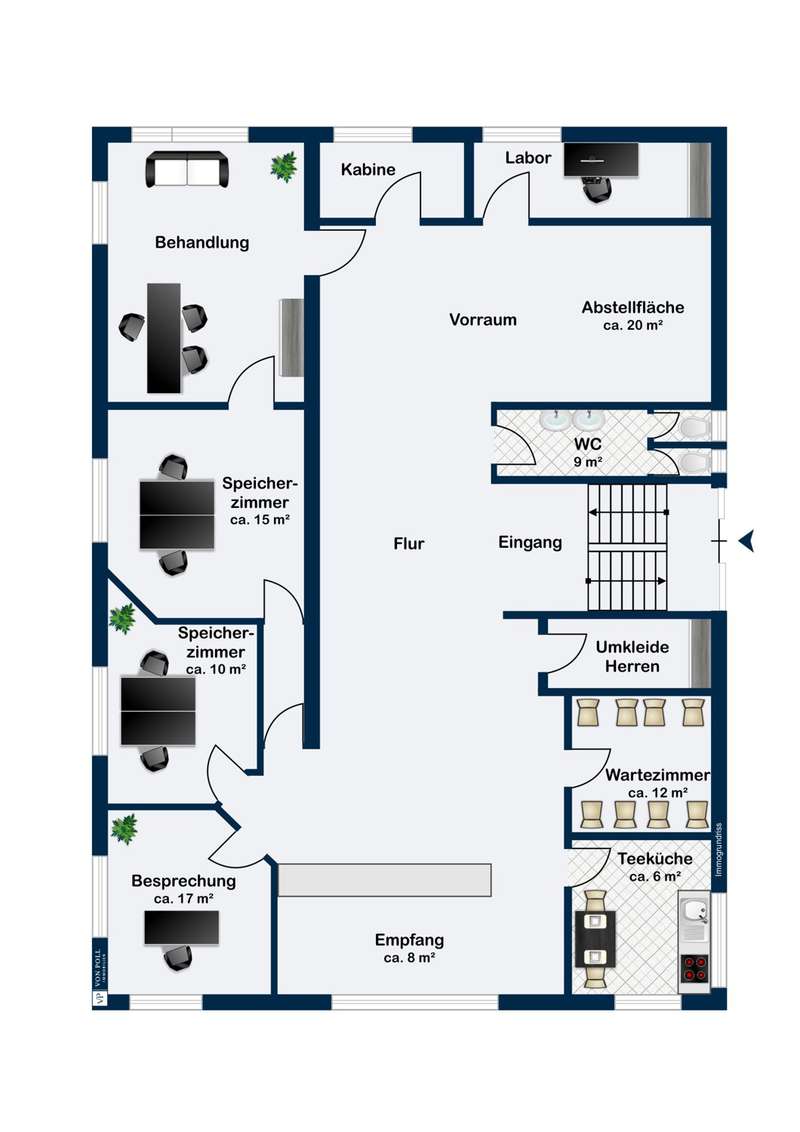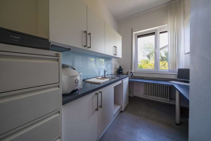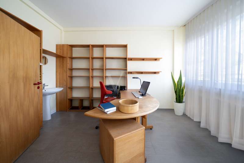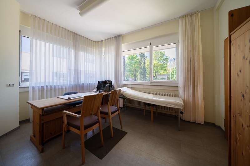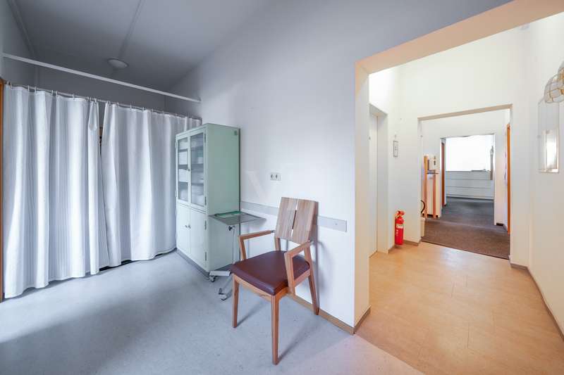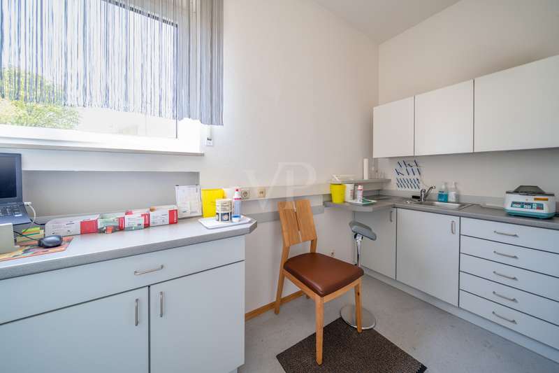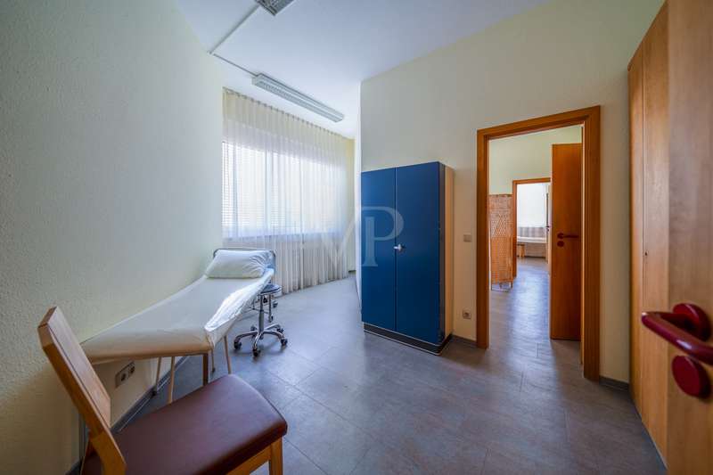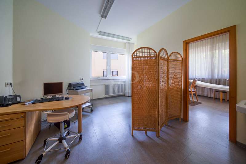 This practice space is located on the first floor (raised first floor) of an apartment building and comprises approx. 140 m². In addition to a spacious entrance/reception room, a waiting room, there are 4 further office and treatment rooms as well as a laboratory.