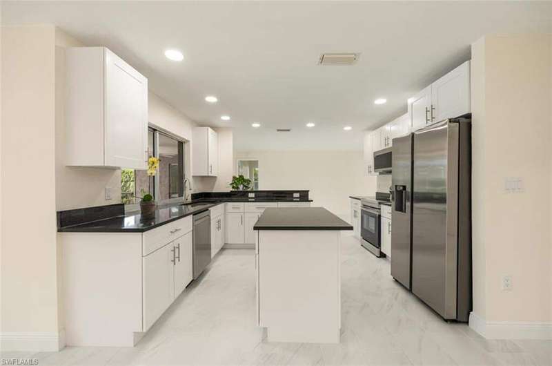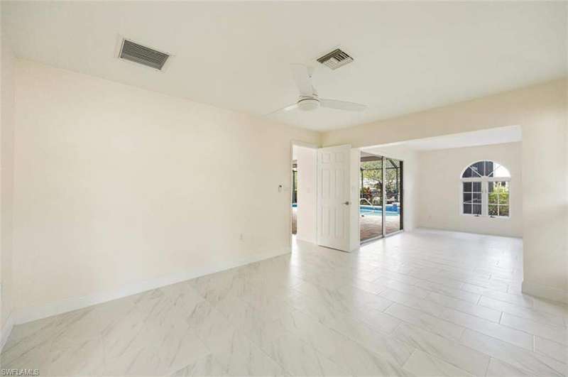 Brand NEW ROOF with 50-yr warranty shingles just installed in September 2025 and fresh neutral exterior paint in October 2025 and NO price increase! New exterior photos coming! So centrally located near everything Naples has to offer! Hop on your boat from your backyard to the Gulf via the wide-open legendary Gordon River! The all-new bright OPEN kitchen has gorgeous views across your sparkling new pool to the canal, and features granite counters, new white shaker cabinetry and new stainless Samsung appliances. This floorplan offers tremendous flexibility to suit your lifestyle including a large primary suite with new bathroom and oversized walk-in closet with wood built-ins, and boasts its own den/office or exercise area and lanai access. Plenty of room for family here with 2 large guest bedrooms and a newly renovated guest bath with linen closet, enclosed by its own pocket door for guests' privacy, and nicely separated on the other side of the house from the primary suite. All beautiful new designer tile flooring throughout the home! The pool was completely redone with all new concrete/tile in 2022; the lanai was rescreened in 2019. AC is 2022 (compressor and ductwork) and 2019 (air handler). The systems in this home are essentially new including 2024 water heater, home completely re-piped (2023), electrical panel 2024, new driveway 2022, and new fans and LED lighting. Home priced to sell almost $200K below attached April 2025 appraisal! Feb. 2025 4-point inspection done for you and attached, although completed prior to new roof. Coconut River Estates has no rental restrictions and is one of Naples' best-kept secrets, and is 10-12 minutes from beautiful beaches, renowned 5th Ave./3rd St. or Mercato or Waterside shopping and dining, or 5 minutes from scenic Naples Greenway biking/hiking! There are more and more Coconut River Estates homes valued well over $1-$2 million. VOLUNTARY HOA fee of $450/year is optional, and the amenities and activities are amazing, including a large heated pool, 4 pickleball courts, tennis, shuffleboard, basketball, clubhouse, playground, community boat dock, dog park, storage for boat trailers or kayaks/canoes, and activities such as tennis lessons, concerts and a family-friendly holiday parade! Note, many other homes in Coconut River do NOT offer boat access from your lot to the Gulf. So come make this YOUR new slice of PARADISE!