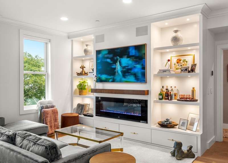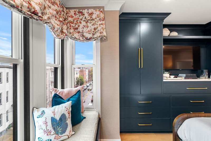 Sophisticated light-filled condo in the heart of East Boston s Jeffries Point! Elevator, deeded garage parking & smart features offer modern convenience, while curated designer upgrades deliver undeniable high style. Inside, a fabulous open floor plan shines with custom built-ins framing a chic fireplace & mantle, seamlessly integrated Sonos sound & designer kitchen featuring a large central island, sleek quartz counters backsplash & stainless appliances. The primary suite impresses with custom storage, cozy window seat, and spa-like bath with custom tile and walk-in shower. The 2nd bedroom doubles effortlessly as an office or guest retreat with built-in storage and queen Murphy bed. In-unit laundry, bespoke storage solutions & motorized Hunter Douglas blinds throughout, keyless entry, video intercom, pet wash, and bike storage. Top it off with a roof deck for every season gas fire pit, grill, and sweeping city views minutes to downtown, Logan, Blue Line, Piers Park, dining, and more!