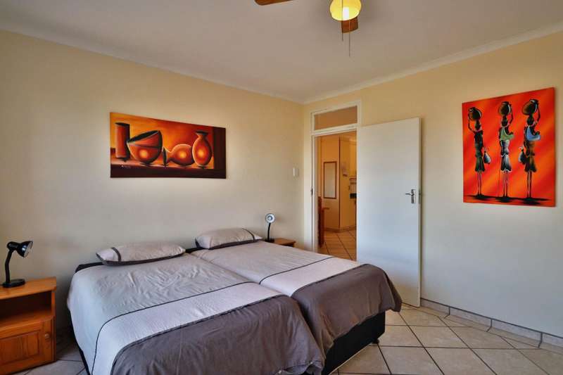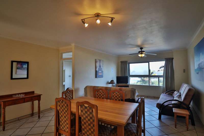 An ideal, delightful unit right on the beach! Tiled throughout, with lots of cupboard space, this will be your best investment yet. This end unit is on the 2nd floor, ideal for people who don?ÇÖt like heights. Lots of privacy with hardly anybody passing by. The lounge and dining area are open plan. Listen to the ocean and feel the lovely breeze on your face. Enjoy the lovely view from all sea-facing windows. The kitchen is fully functional with lovely granite countertops and ample cabinetry, and to top it all, if required, the unit comes with all furniture and equipment. Two spacious bedrooms, two bathrooms, with a main-en-suite. As if that is not enough, you also have direct beach access, a pool in the complex and secure basement parking. For runners, the promenade is right there for your use. This investment is only a phone call away!