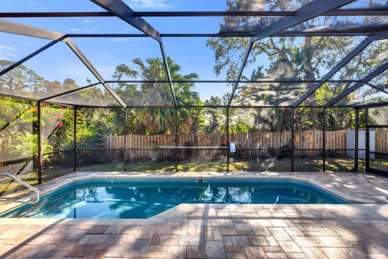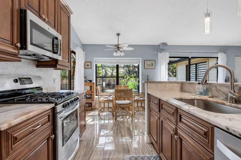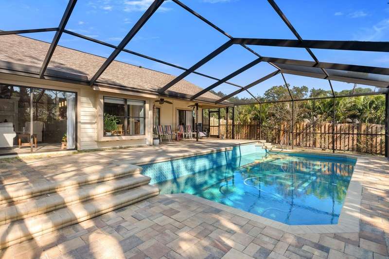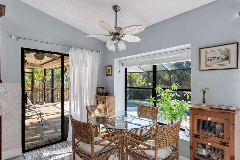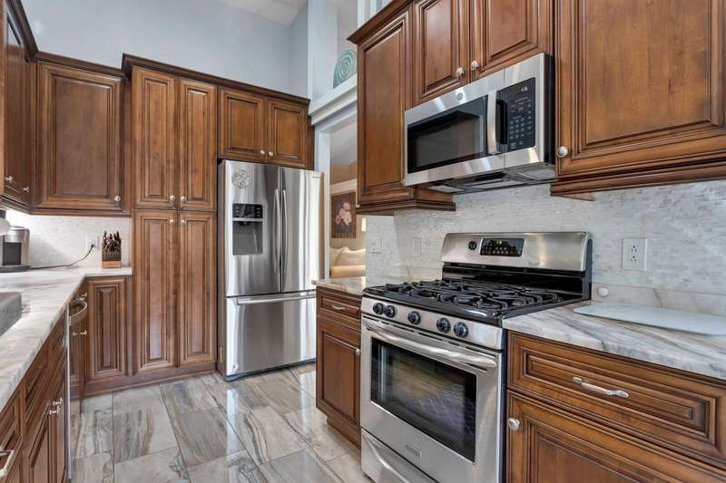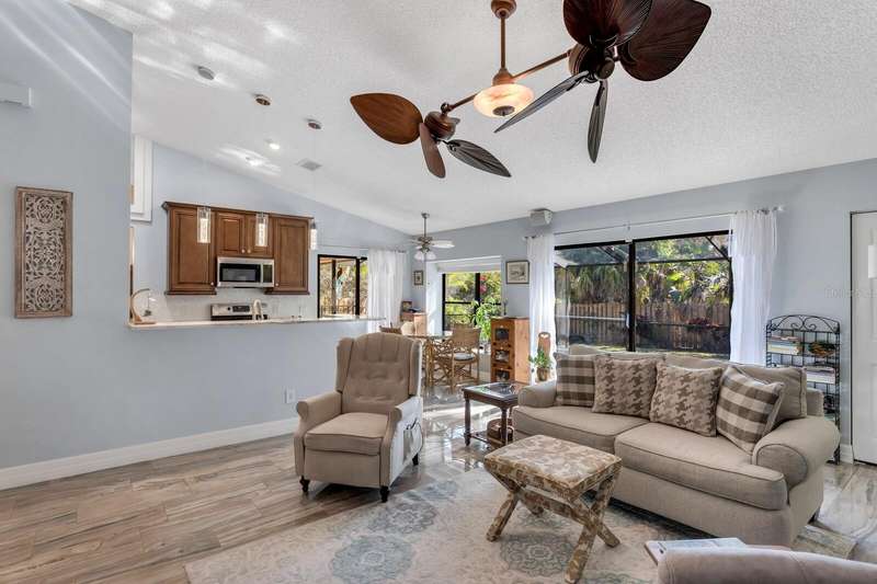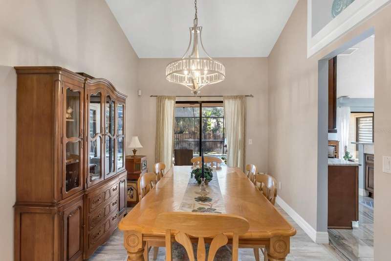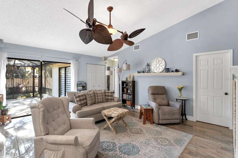 Under contract-accepting backup offers. Nestled on a spacious corner lot in the highly desirable Village of Woodland Hills, this beautifully updated 3-bedroom, 2-bath POOL home offers exceptional comfort, style, and Florida living at its best. The inviting interior features surround sound throughout the main living areas, updated lighting and ceiling fans, and multiple spaces designed for everyday living and entertaining. Eat-in kitchen is a standout with wood cabinetry, stone countertops, stainless steel appliances, breakfast bar, and a designer tile backsplash. A formal living room showcases a stunning stone feature wall with sconces, while the family room impresses with built-in cabinetry and vaulted ceilings. The dining room overlooks the sparkling pool and lush yard, creating the perfect backdrop for gatherings. The primary suite offers vaulted ceilings, sliders to the pool, spacious walk-in closet, and a well-appointed ensuite bath with granite countertops, double sinks, stall shower, and relaxing soaking tub. Two additional bedrooms provide flexibility, including one with pool access. The guest bath features granite countertops and a tub/shower combination. Step outside to the expansive lanai boasting a large covered area, brick pavers, and a heated saltwater pool featuring a sun-shelf and stylish porcelain tile. The pool has been resurfaced, re-screened, and equipped with a heater for year-round enjoyment. The fenced backyard is beautifully landscaped and offers exceptional privacy. Propane powers the pool heater, dryer, range, and hot water. (A natural gas meter is also installed). 2-car garage includes a utility sink and pull-down attic access. Additional updates include a NEW Roof (2022), NEW A/C compressor (2025), and interior/exterior paint (2021). Located in the serene and meticulously maintained Village of Woodland Hills, residents enjoy tree-lined sidewalks, community pool and tennis, nature preserves, and easy access to top-rated schools, parks, restaurants, shopping, beaches, and beautiful Lake Tarpon just minutes away. This friendly and picturesque community is one of Palm Harbor’s most desirable places to call home.
