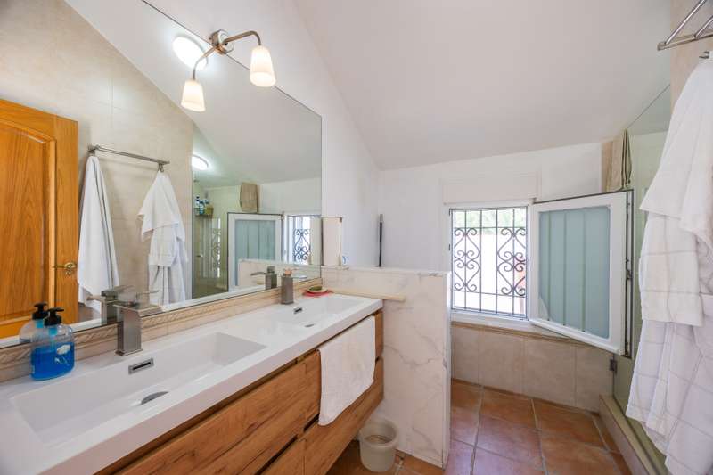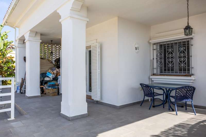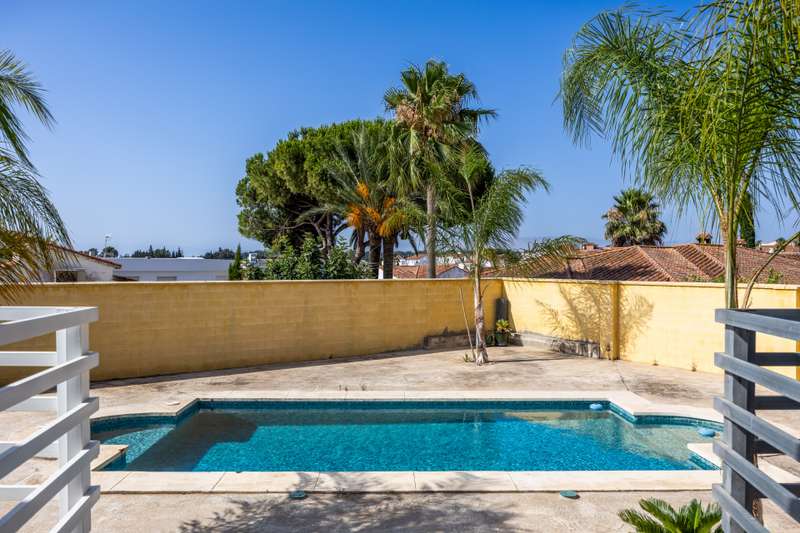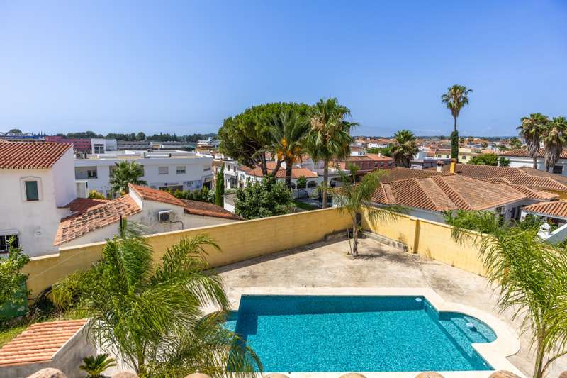 Exclusive detached villa in Pueblo Nuevo de Guadiaro, built in 2005 with top-quality materials on a generous 1,017 m² plot. It is the last home constructed in the area, ensuring a modern, solid build perfectly suited to today’s lifestyle. This magnificent property is located in an established residential area, ideal for enjoying peace and quiet without sacrificing proximity to all essential services. Just a short walk away you will find shops, restaurants, public schools, and only 5 minutes away, the prestigious Sotogrande International School. There is also a nearby bus stop providing easy access to Colegio San José. This property stands out for its privacy, spaciousness, and a design focused on family comfort. Its reinforced concrete basement walls guarantee a robust structure, while PVC windows with Climalit double glazing ensure excellent thermal and acoustic insulation. The house features solar panels supplying a 400-liter tank, optimizing energy consumption, along with air conditioning in all rooms, distributed through wall-integrated ducts for efficient and discreet climate control. Completing the comfort is a modern fireplace with internal turbines, which distributes heat to the other rooms. The villa is arranged over three floors with bright, functional spaces. On the main floor, there is a large living-dining room with direct access to a spacious partially covered terrace and the pool area, perfect for entertaining. The kitchen has been completely renovated with high-end furnishings, offering a practical daily dining area with large windows overlooking the exterior, and direct access to the laundry room and terrace, ideal for gatherings or barbecues. This floor also houses two bedrooms and two bathrooms, along with built-in wardrobes providing ample storage. On the upper floor, you will find an independent suite with vaulted ceilings, an en-suite bathroom, a dressing room, and a large terrace with open views. This level has been thermally and acoustically insulated for maximum comfort and includes a storage room where the 400-liter water tank is located. The exterior is thoughtfully designed for year-round enjoyment: a chlorine pool recently renovated with Sika lining, surrounded by palm trees and mature landscaping, sunbathing areas, a barbecue, covered porch, and automatic irrigation system. The property also offers a basement garage with space for two vehicles, a large storage or workshop area, and a water softener system, essential in the area for daily use. All of this reflects a solid, well-maintained home, perfect both as a permanent residence or as an investment, thanks to its strategic location close to international and public schools, supermarkets, pharmacies, shopping centers, with quick access to the motorway, Sotogrande’s beaches, and prestigious golf courses. Don’t miss this opportunity. Contact us for more information or to arrange a viewing.