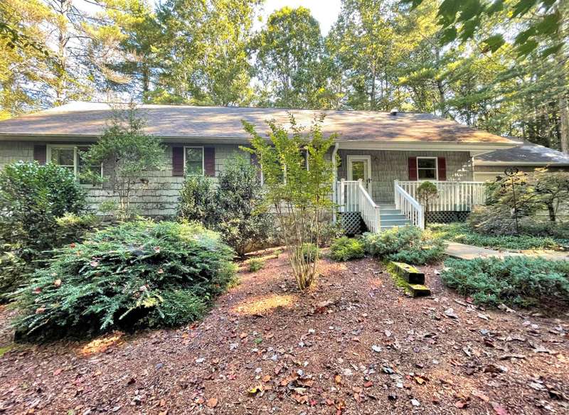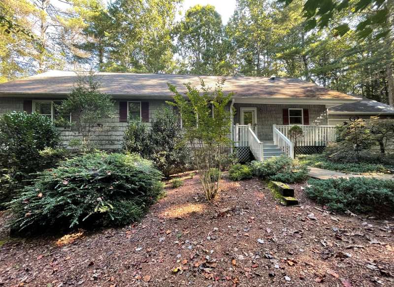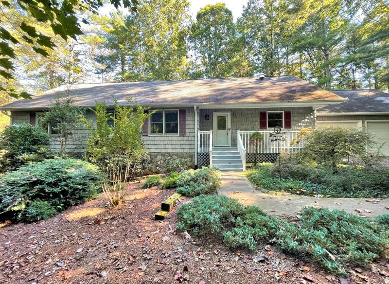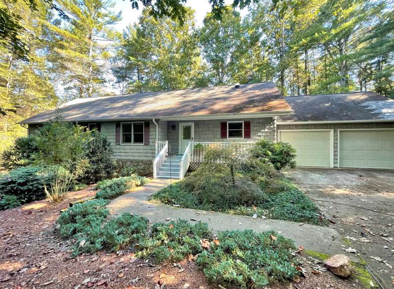 If you're looking for single-story living in a private setting, this might be the home for you! Nestled amongst the trees on an almost 2-acre parcel, this home boasts 3 bedrooms, 4 baths, and a 2-car attached garage on the main level. Plus, the full basement level can be accessed via a separate paved driveway and has both a 7-foot and a 9-foot garage door with a huge 1,700 square foot space to store your boat, camper, and set up a workshop. There's even a full bathroom on this level. The home features a generous open concept design that gives you plenty of space for entertaining and relaxing with both a large family room in the heart of the home and a light-filled den off the back. There are two ensuite bedrooms with private baths to choose from for your primary bedroom, one with its own private deck opening up to the outside to enjoy the surrounding natural landscape. Two additional rooms could be used as bedrooms or an office. Hardwood floors throughout most of the home with 2 carpeted bedrooms and tile bathrooms. Hawks Hill is a private community in Caldwell County, featuring tennis courts, walking trails, and other amenities for its members. Call for more information or your private viewing of our listing W139.