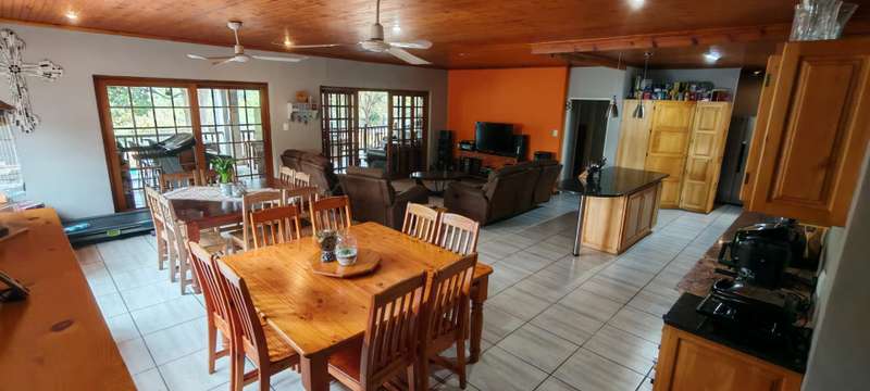 The open plan living area and kitchen leading out onto a large deck and patio, leads itself to great entertainment with a built-in braai.