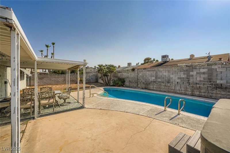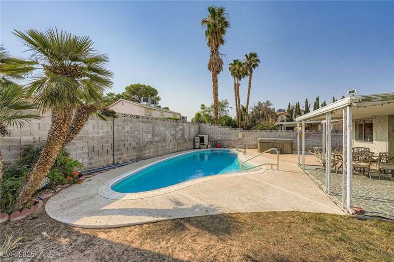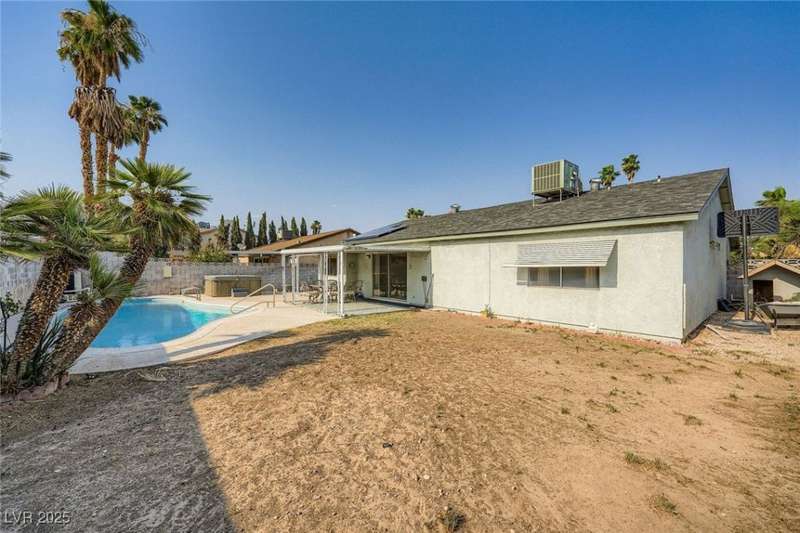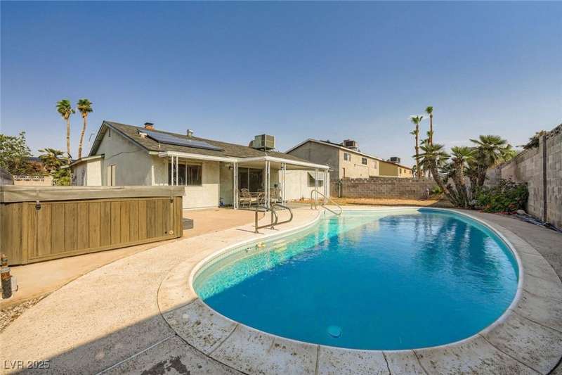 Welcome to this charming home nestled in the heart of Las Vegas. The home boasts a cozy family room anchored by a traditional wood burning fireplace, a functional floorplan with a mix of carpet, laminate and tile flooring. One standout feature of this home is the private in-ground swimming pool, ideal for cooling off during the warm Vegas summers or entertaining guests in your backyard oasis. Complementing the pool is an above ground hot tub, offering a relaxing retreat perfect for unwinding at the end of the day. The oversized backyard provides plenty of space for lounging, outdoor dining, or gardening, making it an ideal setting for both relaxation and fun. Best of all, this home is located in a NO HOA neighborhood, giving you the freedom to personalize and enjoy your property. Situated in the quiet and well-established Charleston Heights, the property is close to local schools, shopping centers, and major freeways, offering convenience and community. Pending cancellation of escrow