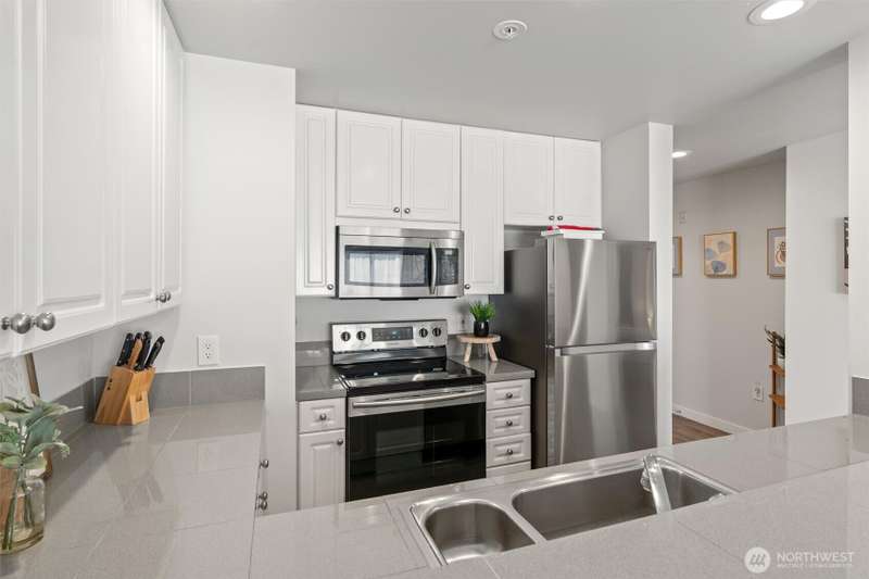 Live in the heart of it all! This top-floor 1BR + den/office condo at Pacific Center boasts an amazing Walk Score of 98 and Transit Score of 100, plus sweeping city and stadium views. Sun-filled south facing windows light up the open floor plan featuring newer appliances, a full bath, in-unit washer/dryer, secure gated parking, and a 4'x4' storage unit. Step out to dining, retail shops, and the Yesler Hillclimb—right outside your door! Near Lumen Field, T-Mobile Park, Pioneer Square, and downtown. Pet-friendly, no rental cap, HOA covers water, sewer, and garbage. Secure building with Amazon lockers, gated entry, and more. Amazing access to public transit including the train, busses & sound transit. Don’t miss it!