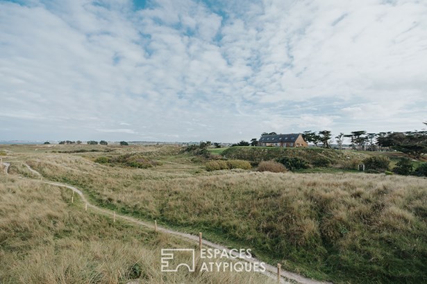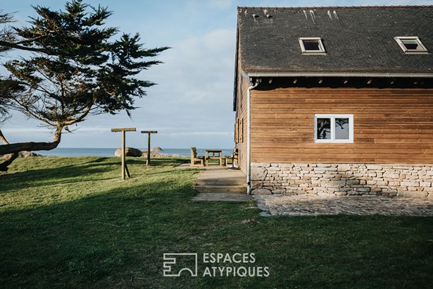 Exclusivity Espaces Atypiques Exceptional location for this property, located in the town of Ploudalmezeau, composed of a set of 5 Scandinavian-style houses, with a total surface area of approximately 369 m2, built on the dunes, on a vast wooded plot of approximately 4.6 hectares, with direct access to the coastal path and the beach. Benefiting from a breathtaking panoramic view of the sea, this property offers a unique spectacle every day, as close as possible to nature. From all the rooms of the first two adjoining houses, of approximately 120 m2 and 110 m2, perched on the dunes and facing the sea, you can contemplate the coastal landscape and the infinite variations of the lights of the Iroise country. The sunsets that set the sky ablaze are enchanting. Once through the front door, you will discover, in these two houses, a functional and warm living space, with a Nordic spirit, where the simple and natural decoration highlights each view of the sea like a painting. The first house of approximately 120 m2 includes, on the ground floor, a warm living-dining room with its wood stove, an open kitchen equipped and fitted opening onto a wooden terrace overlooking the dunes, a bedroom with a breathtaking view, a laundry room-shower room and a toilet. Upstairs, two bedrooms, a large hallway and a bathroom will allow everyone to live at their own pace in perfect harmony. The second house of approximately 110 m2 includes, on the ground floor, a living-dining room with a wood stove, an open kitchen equipped and fitted where the sea will be your daily inspiration, a shower room and a toilet. Upstairs, you will discover two bedrooms, a cabin bedroom like in a boat and a bathroom with toilet. The three other houses, of approximately 42 m2, in the spirit of a 'cabin' on the dunes, grouped together like a small hamlet in the wooded part of the land, each include a living-dining room with an open fitted and equipped kitchen, a shower room, a toilet and two bedrooms in the attic upstairs. A large shed for accommodating animals and storing wood completes the ensemble. An exceptional refuge perched on the dunes, this property is ideal for generating rental income, for embarking on a shared housing project or for welcoming family and friends in all simplicity, in the heart of a protected natural area. A true haven of peace, a few minutes from the shops and services of the port of Portsall and the town of Ploudalmezeau, only 30 minutes from Brest, this property offers a rare opportunity to live a unique experience in the heart of a preserved environment. Contact: Karen 07 89 24 21 17 RSAC: 811 597 681 Brest Energy Class: C / Climate Class: A Estimated average amount of annual energy expenditure for standard use, based on 2021 energy prices: between 600 euros and 860 euros For information on the risks to which this property is exposed, please consult the Georisques website: https://www.georisques.gouv.fr
