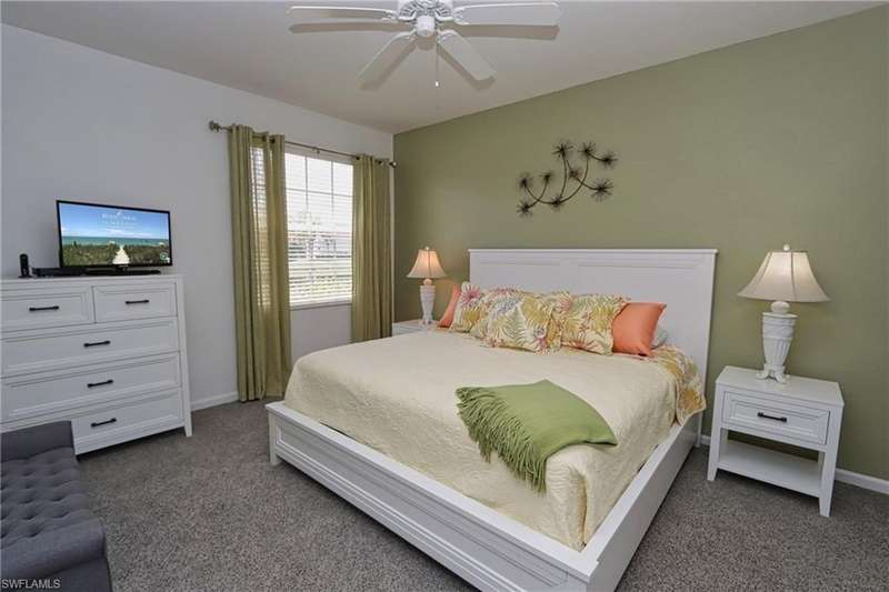 Beautiful 2 bedroom plus den/2 bath, 1st floor coach home in the very desirable neighborhood of Shadow Wood at the Brooks. Breathtaking southeast views of the lake from Lanai, living area, kitchen and master bedroom. The master bedroom retreat has a king bed, tv, and walk-in closet. Master bath with walk in shower and soaking tub as well as dual vanity. There guest room features a Queen bed and den has a sleeper sofa for additional guests. Renovated guest bathroom with walk-in shower. Full laundry room in residence. Beautifully appointed living room with flat screen TV, dining area with seating for 4, tranquil lanai with plenty of seating and fully equipped kitchen. Morningside has a neighborhood pool and community room. Fabulous location near Coconut Pointe mall for shopping and dining and short drive to the white sand beached of Bonita Springs! WiFi and cable included.
