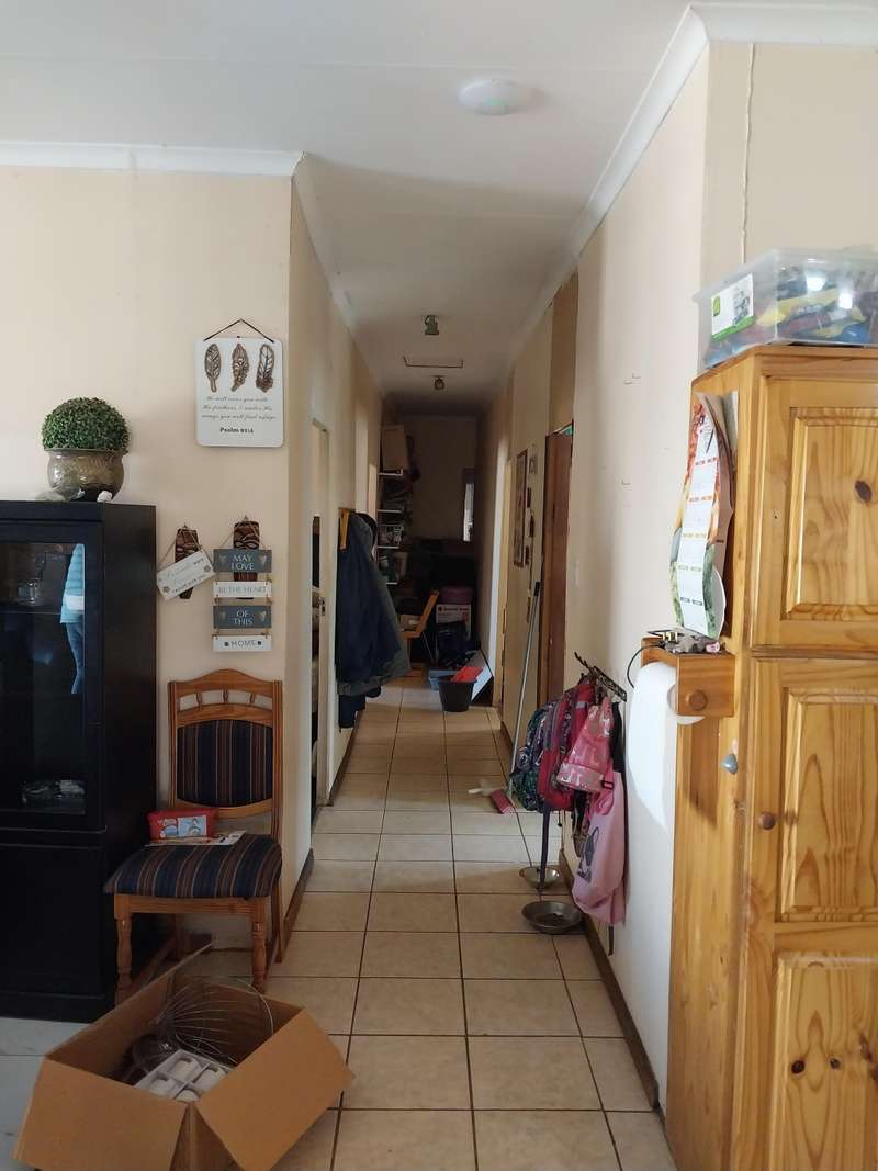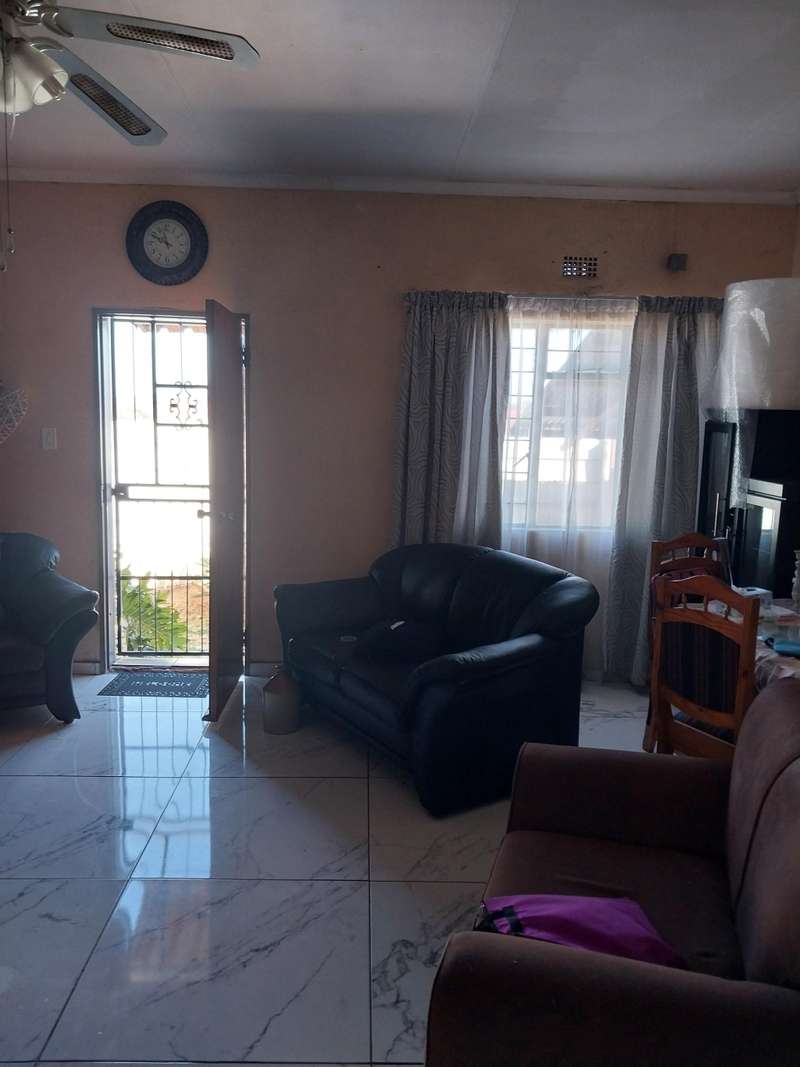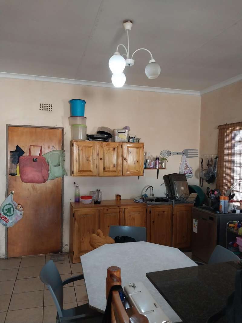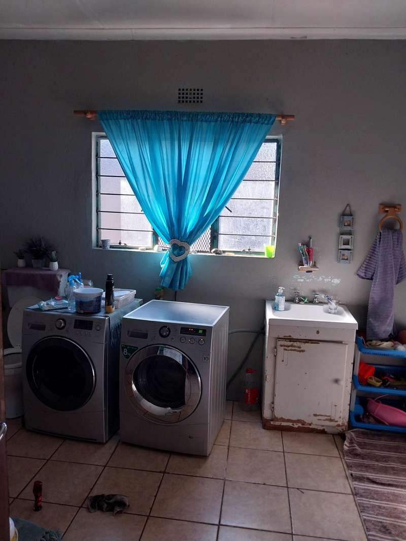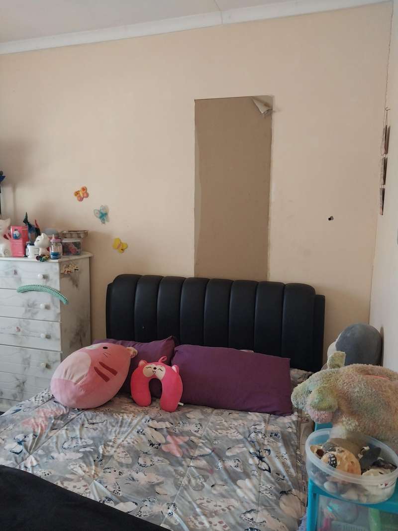 Two in on this property offers you six bedrooms with cupboards two bathrooms first bath room with bath toilet and basin second bath room with bath , basin and separate toilet 2 Lounges Dining room Kitchens one kitchen with cupboards and stove second kitchen no cupboards Outside rooms 2 garden Garage single carport Fenced Ideal for a big family with so much space Call now