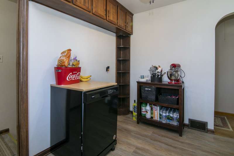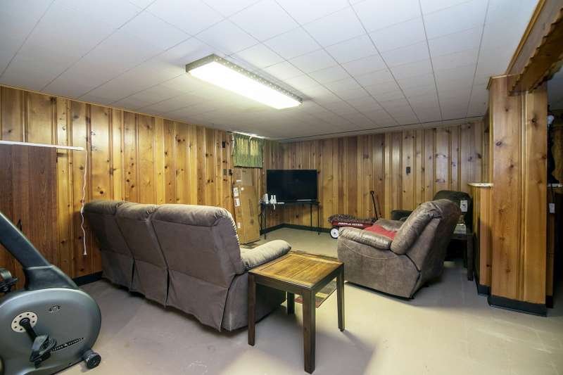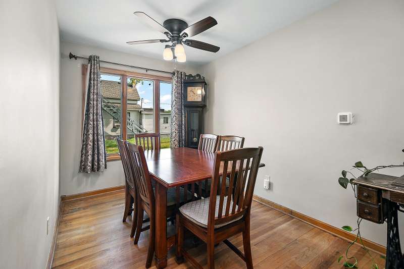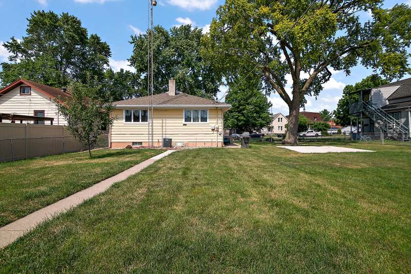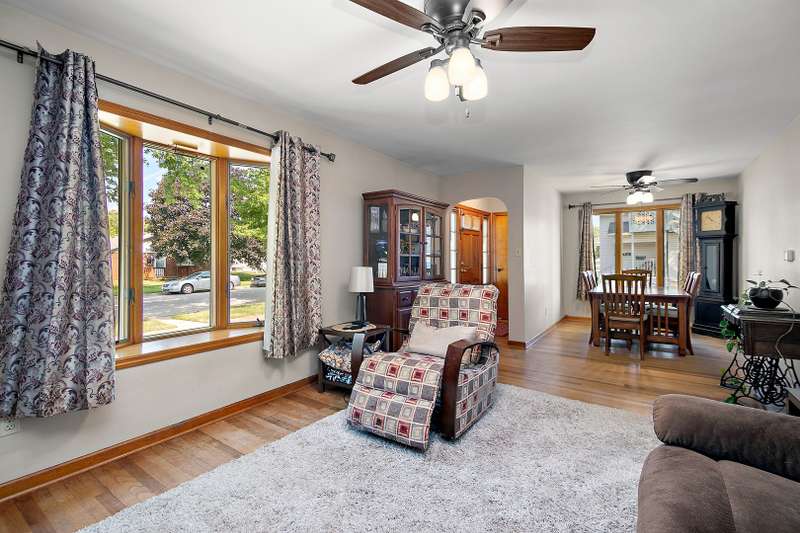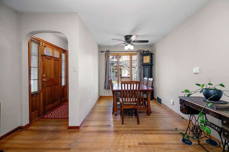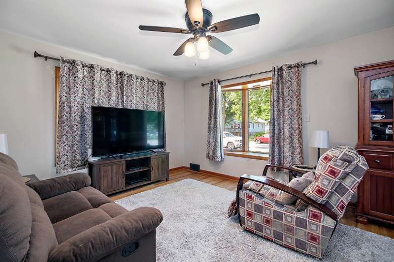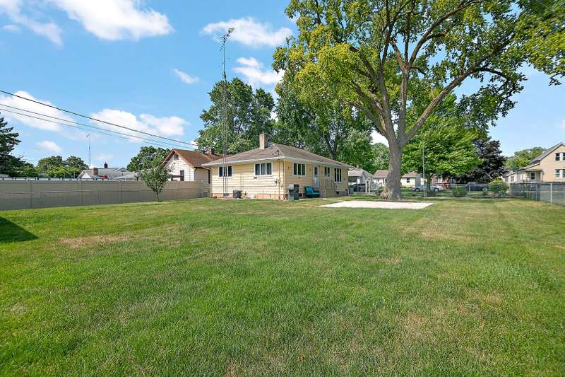 Beautifully maintained! This classic ranch style home offers timeless charm and thoughtful updates. The spacious living and dining area is filled with natural light and highlighted by beautiful hardwood floors. The efficient kitchen features 42" cabinets and excellent storage. A vintage inspired hall bath showcases stylish tile and a retro mirror, adding character to the home. The full basement is an entertainer's dream with a huge rec room, a dry bar, and an entire wall of built-in storage. You'll also find a large laundry/utility area and a workshop an ideal use of space. Set on two lots, the fenced in property boasts mature landscaping, concrete patio and a 3-car garage. This home is truly a rare find beautifully cared for and ready for its next chapter!