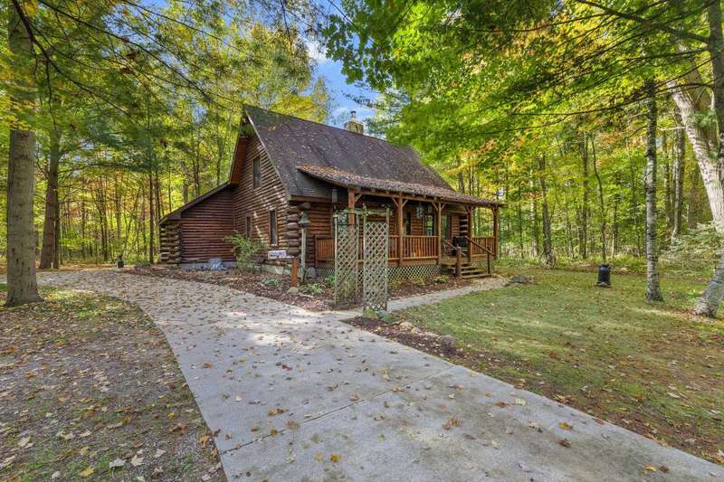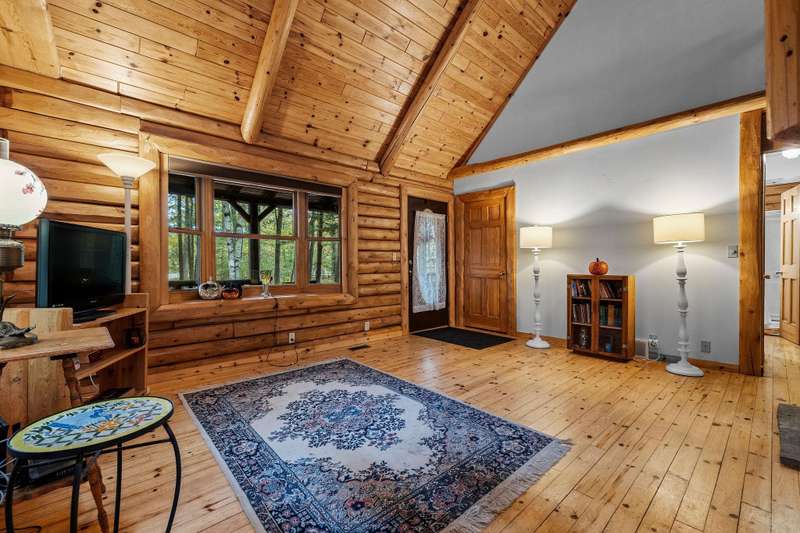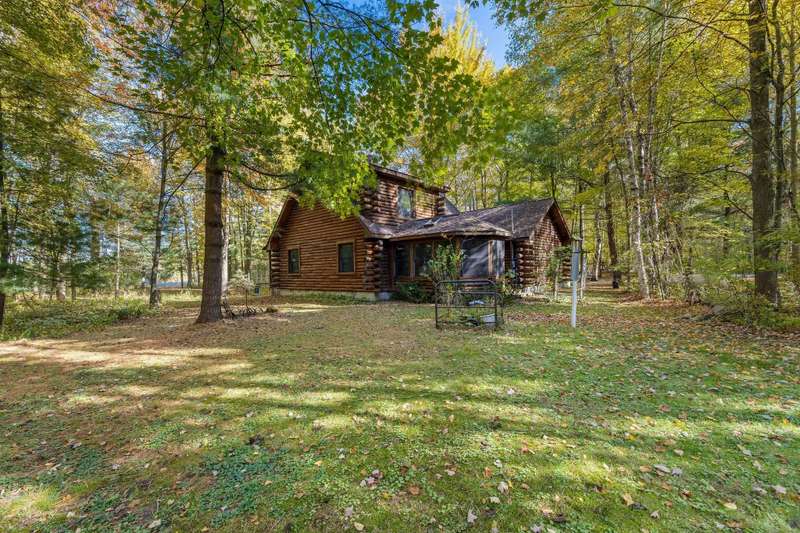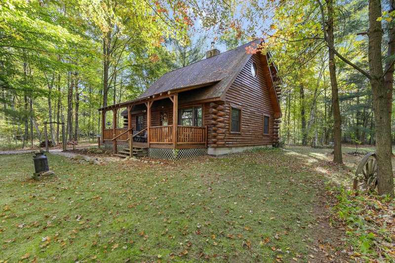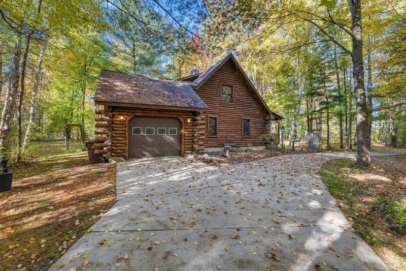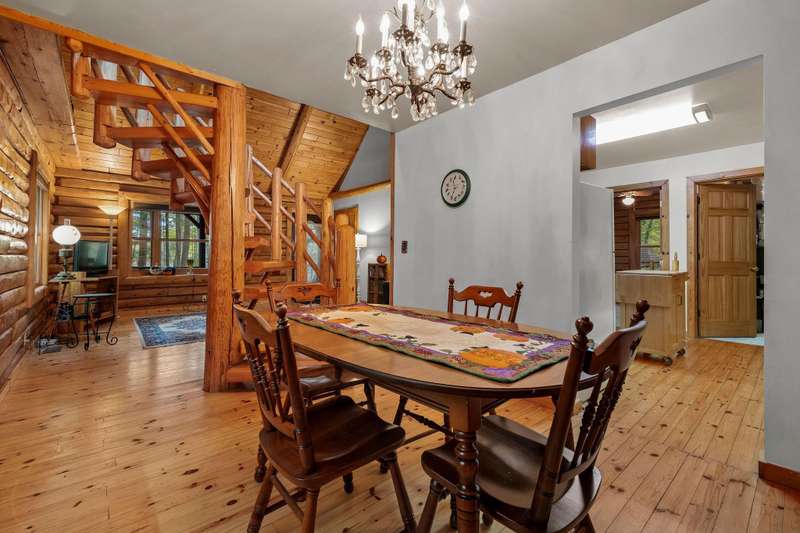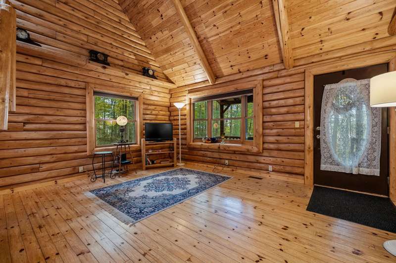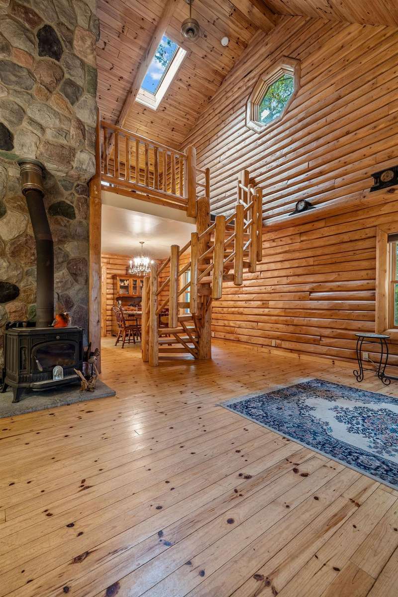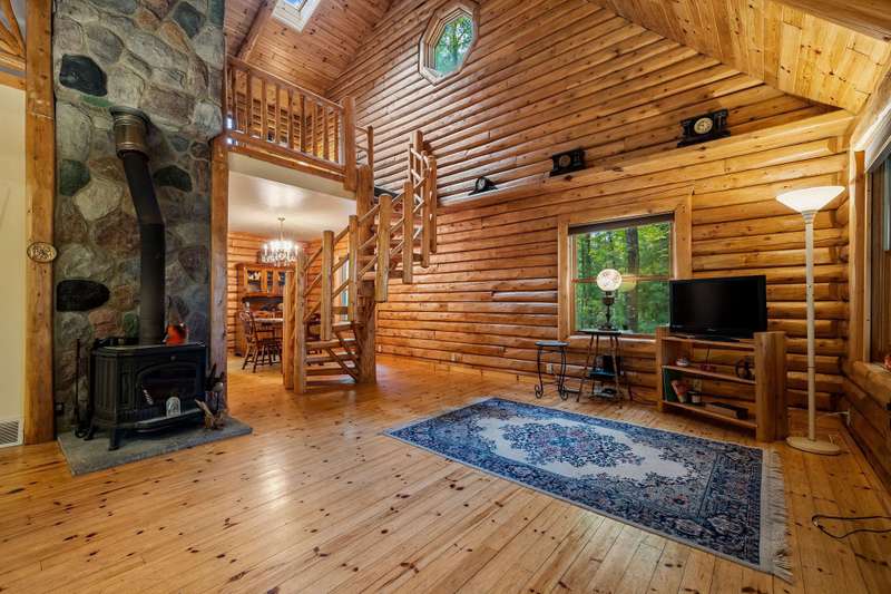 As you walk up to this beautiful front porch, you experience a bygone era of simplicity and craftmanship in this two bedroom, 2 bath log home. It is nestled in the woods on a 3.48 acre parcel in desirable Larkin Township. The vaulted ceiling in the living room lifts you eyes to the custom, hand built staircase that leads to the second floor. But before you wonder up to the second floor, checkout the first floor amenities of a main floor bedroom, bath, office, custom handmade cabinetry in the kitchen, dining room, four seasons room and a main floor laundry. The second floor features a primary bedroom, walk-in closet, attic access to the storage area over the garage, full bath and a second floor family room that could be converted into a 3rd bedroom. The crawl space is 4' tall and has electric lighting. Also the perfect outdoor space, has a heated pole barn for hobbies and all the toys. This one owner home has just come on the market for the first time! Schedule your personal showing today to see this one of a kind opportunity!