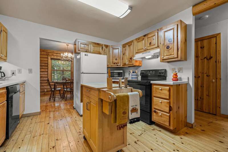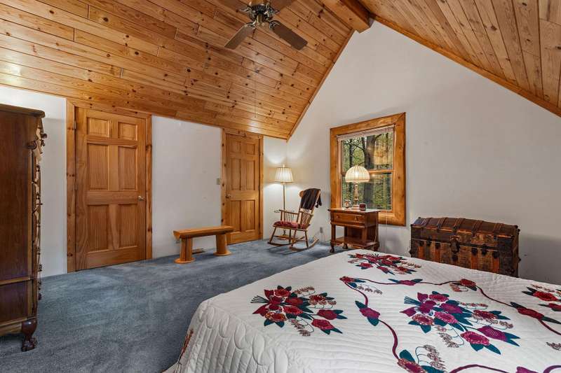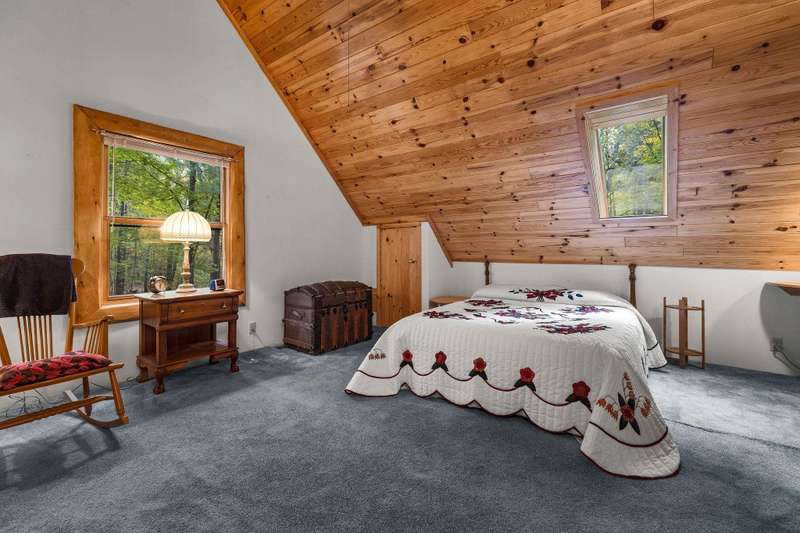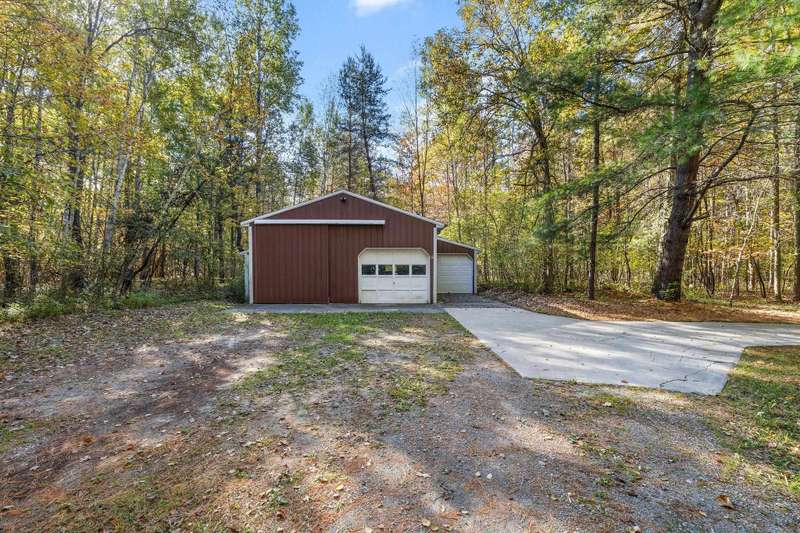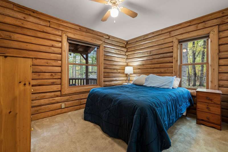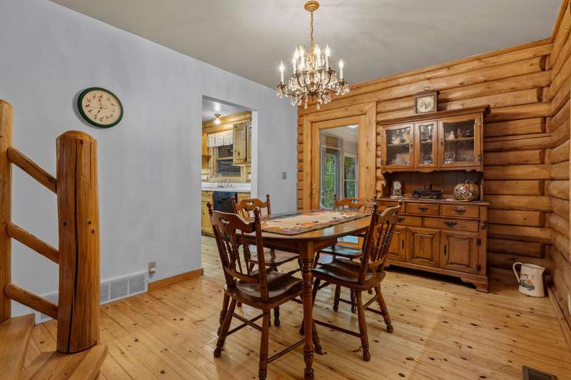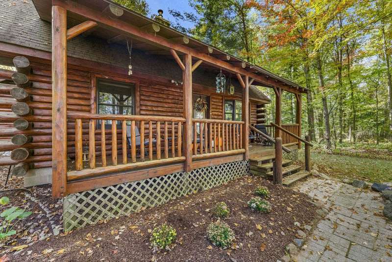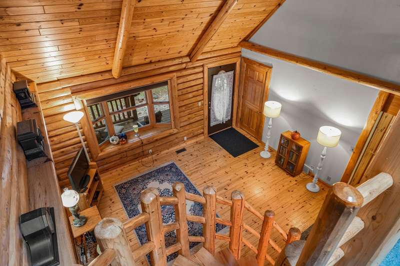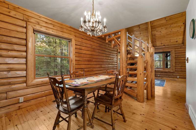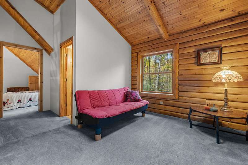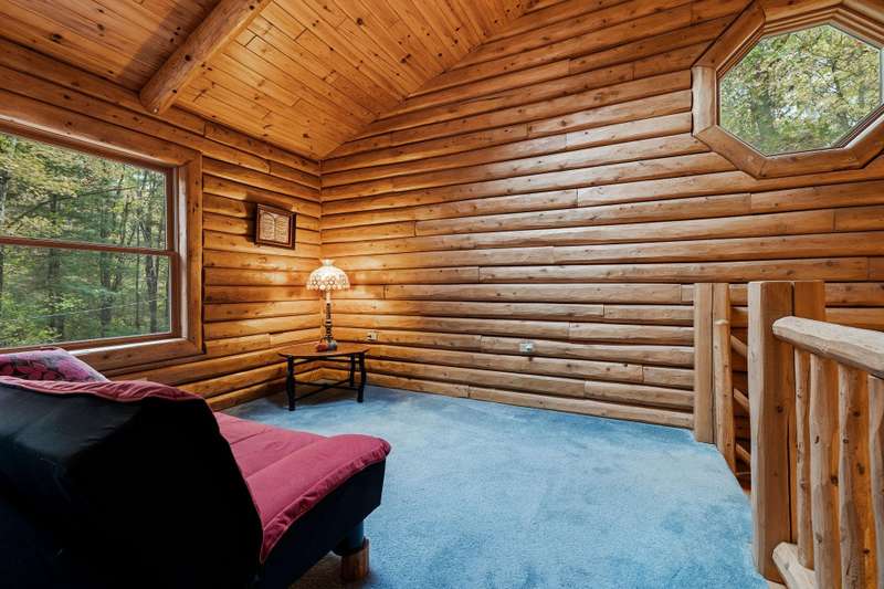 As you walk up to this beautiful front porch, you experience a bygone era of simplicity and craftmanship in this two bedroom, 2 bath log home. It is nestled in the woods on a 3.48 acre parcel in desirable Larkin Township. The vaulted ceiling in the living room lifts you eyes to the custom, hand built staircase that leads to the second floor. But before you wonder up to the second floor, checkout the first floor amenities of a main floor bedroom, bath, office, custom handmade cabinetry in the kitchen, dining room, four seasons room and a main floor laundry. The second floor features a primary bedroom, walk-in closet, attic access to the storage area over the garage, full bath and a second floor family room that could be converted into a 3rd bedroom. The crawl space is 4' tall and has electric lighting. Also the perfect outdoor space, has a heated pole barn for hobbies and all the toys. This one owner home has just come on the market for the first time! Schedule your personal showing today to see this one of a kind opportunity!