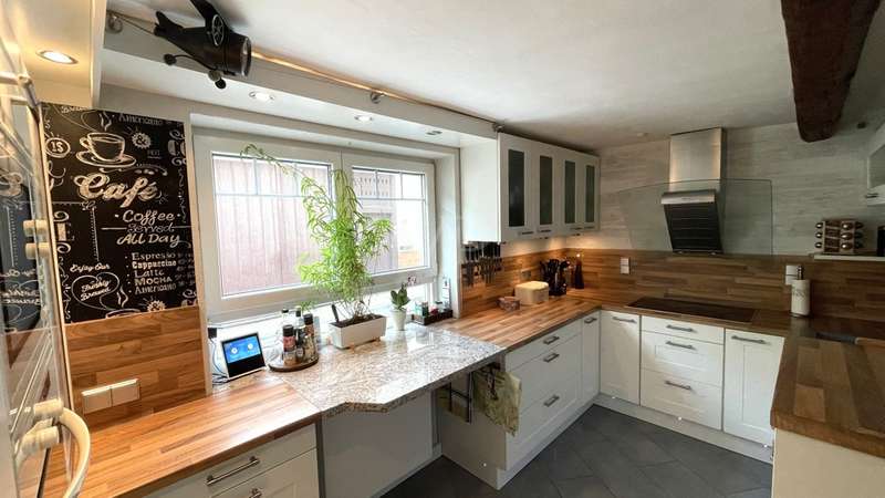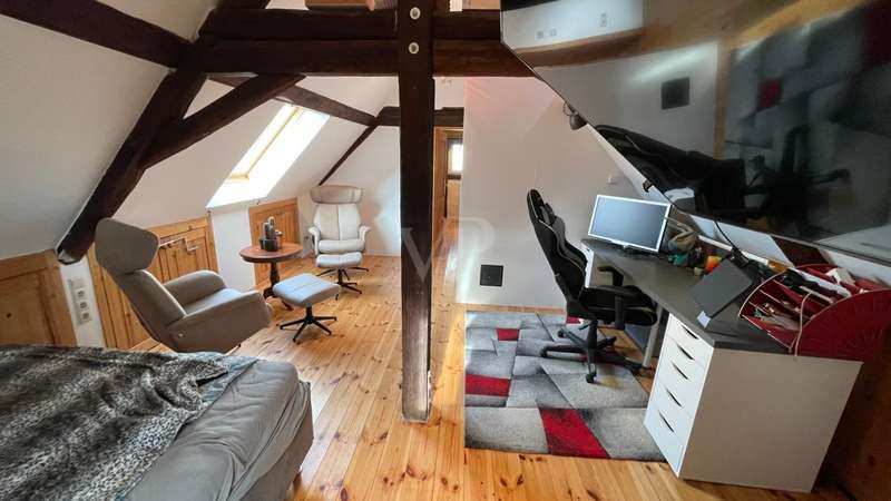 Completely secluded from the outside, you enter the paved courtyard through a wooden gate, which connects the building ensemble consisting of a residential house and barn (both built around 1830). Both buildings have been completely and lovingly restored and refurbished for residential purposes. Great importance was attached to the use of high-quality, natural building materials. The luxurious furnishings leave nothing to be desired in terms of upmarket living culture, while retaining the spirit of times long past. The ensemble, which has been continuously renovated since 1986 and was completely refurbished in 2019/20, was fitted with new insulation and windows with triple glazing and air conditioning, among other things. With a light-flooded living space of approx. 156 m², there are 5 bedrooms, 2 bathrooms and 1 guest WC, which are connected by a stylish wooden staircase across the individual floors. On the upper floor of the former barn, there is a spacious wellness area of approx. 69 m² with Mediterranean flair, which is used for residential purposes. A special highlight here is the built-in whirlpool. The upper floors are therefore dedicated to individual lifestyle. The spacious living/dining area with adjoining kitchen is also impressive. Further rooms such as the bedroom, walk-in closet, bathroom and 2 x guest WC are located on staggered living levels. The building is heated by an almost new heat pump from 2018. The property is in excellent condition and can be handed over in a moderate time frame. If you are interested, please provide your full contact details including telephone number and e-mail address.