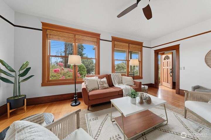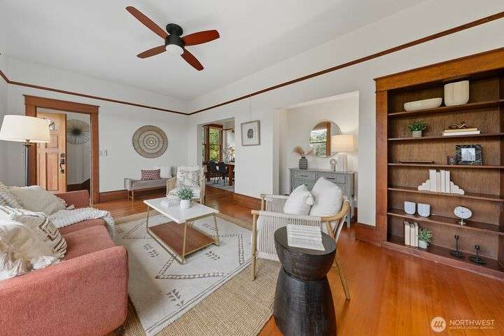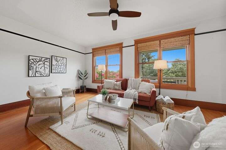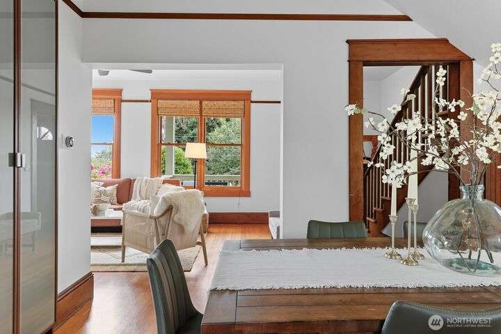 Pride of ownership, individuality and happy vibes emanate from this lovely 1904 Craftsman. Rainier views dazzle, South + East exposure provides gorgeous natural light. Dreamy front porch is the perfect spot to sip coffee and watch the neighborhood come to life while pollinators buzz in the garden. Enjoy Craftsman woodwork AND many smart updates, plus a totally livable layout. Airy kitchen was expanded in 2009, achieving excellent utility and flow outdoors. Host a party al fresco on spacious deck and let it spill out to the verdant patio space, ensconced in mature plantings. Judkins is a perfect hub for work, play, amenities: the park is your playground, walk to myriad cultural + recreational delights, Light Rail is imminent! Welcome home.