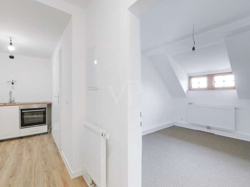 This charming top-floor apartment in a lavishly renovated listed building combines modern technology with the charm of historic building fabric and offers living comfort on around 48 m². The property is in a central yet pleasant location and impresses with its extraordinary combination of style, flair and high-quality furnishings. Following extensive refurbishment, which will be completed in 2025, this property is ready for first-time occupation and is available for immediate occupancy. The apartment has two well-designed rooms that offer versatile usage options thanks to the intelligent floor plan. The generous living space is divided into an inviting living area and a cozy bedroom. The feeling of well-being is enhanced by the special location on the top floor, which creates a bright and homely ambience and offers a sweeping view of the surrounding area. The modern daylight bathroom with high-quality fittings and modern tiles offers comfort and functionality. A compact pantry-kitchen is already available and blends harmoniously into the room concept. The technical renovation of the entire house is also reflected in the heating system: an energy-efficient, central air-heat pump provides comfortable warmth and enables economical heating in the cold season. As a listed building, the house impresses with characteristic details of the historic architecture, which were lovingly highlighted during the renovation and supplemented with modern elements. The extensive refurbishment offers the rare opportunity to live in a building steeped in tradition while benefiting from all the advantages of modern living standards. The central location of this property opens up short distances to shopping facilities, restaurants, public transport and all everyday amenities. Whether commuters, students, couples or singles - this apartment appeals to various target groups who value quality of life and an exceptional living situation. Anyone who appreciates something special and prefers a stylish, fully refurbished apartment in the heart of the city will find what they are looking for here. Don't hesitate and arrange a viewing today! Let yourself be convinced by this unique residential offer and experience a new chapter of modern living in a historic ambience.