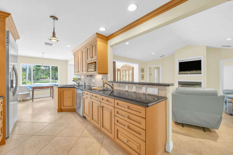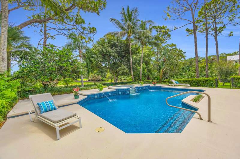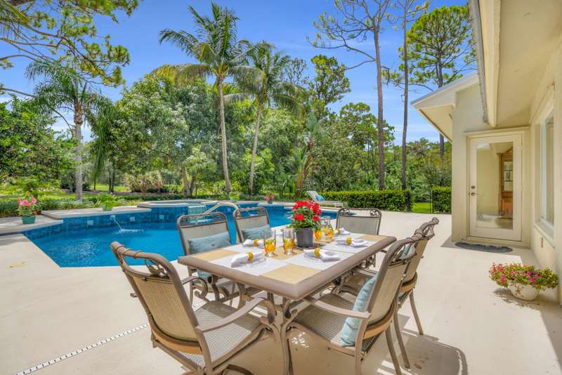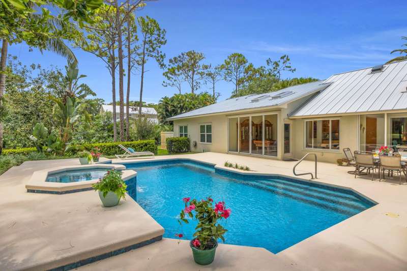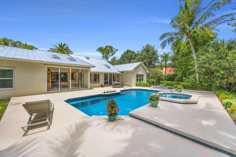 Jupiters Best Value! Over an acre in Ranch Colony, overlooking the 10th green of the Dye Preserve in a 24 hour guard gated community. The pool and views are amazing! Privacy in both front and back. No membership required. Low HOA fees. HOA fees include Hot wire TV and Internet. Newer metal roof - 3 years old. Also skylights are impact and 3 years old. Some impact windows and or shutters.Salt pool with iAquaLink Application and Auto Fill. The fully fenced pool area is a tropical oasis on 1.21 acres. Water System is 3 years old. New tankless water heater, Whole house generator. 250 gallon propane tank. High-end appliances with a 6 burner Gas stove, electric oven. This community has underground utilities. AC units are 2 months old and 5 years old. The garage is oversized at 650 square feet with a hurricane impact door. The community is special, offering 5 different life styles behind the gates of Ranch Colony. Two golf communities, a fly in airpark community, and two Ranching communities. It feels like you are in the country but just minutes from everything! Call now for your private showing! Owner is disclosing that pool heater may not be operable. Being sold AS IS.