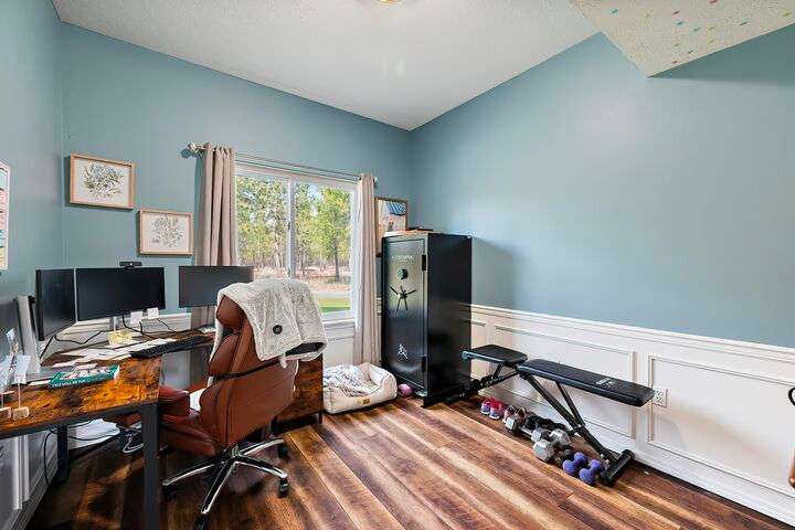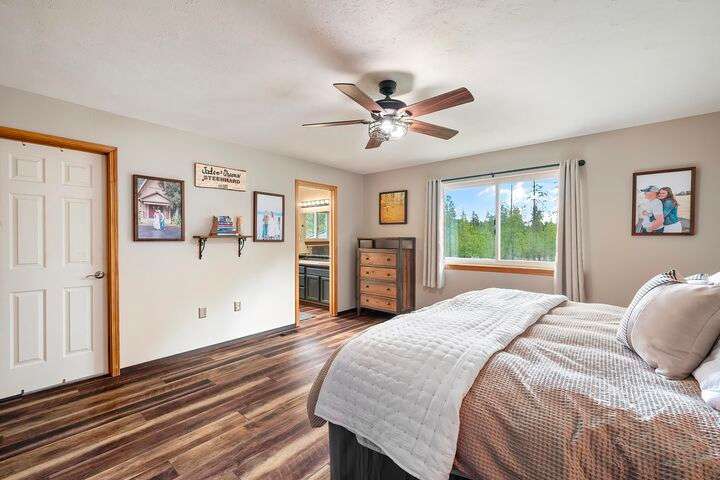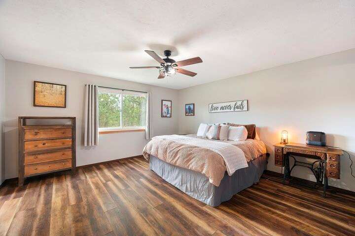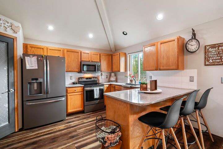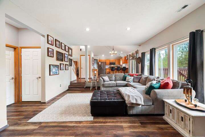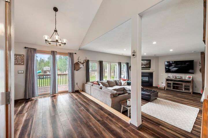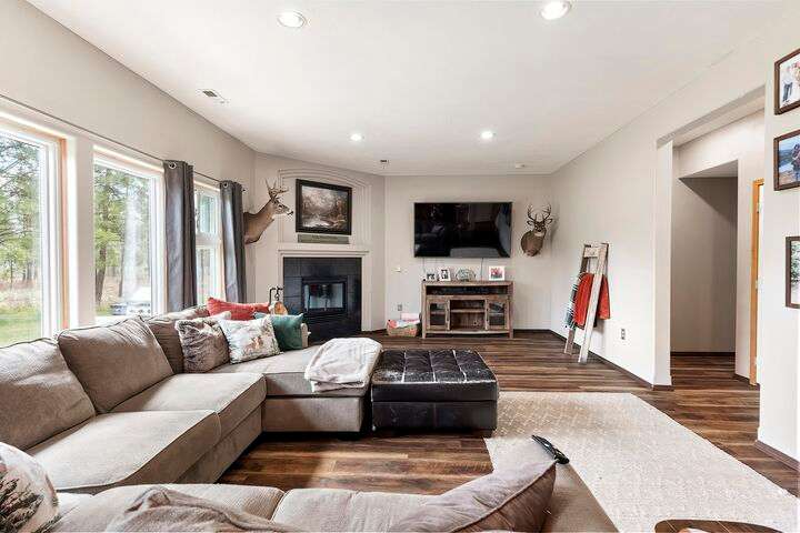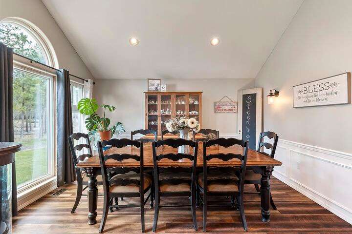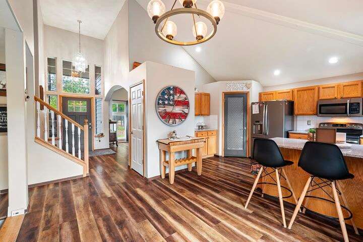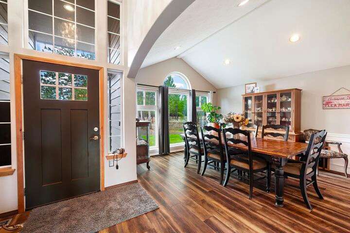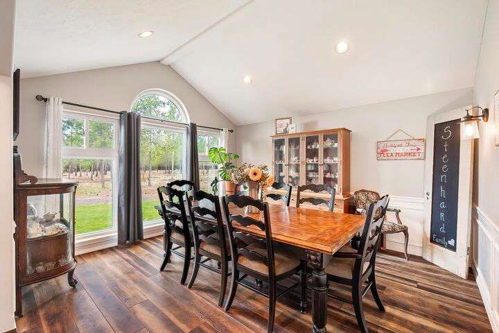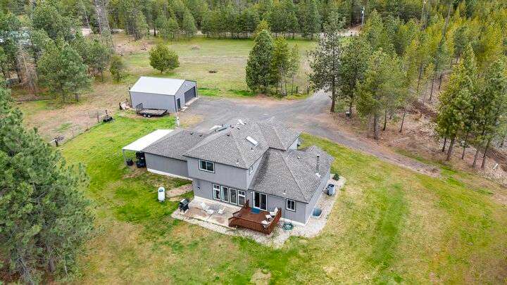 Nestled in a private, level and beautifully wooded lot, this thoroughly maintained home offers unbeatable country living. This home is full of light, spacious and designed with an open concept. Beautiful, updated flooring throughout and a kitchen that has it all. Quartz countertops, stainless steel appliances and a large walk-in pantry. Spacious formal dining area. Just off the kitchen is a cozy family room with a fireplace and large windows looking out to the grounds. Check out the efficient, main floor laundry room. Office/Den/Bedroom on the main floor. Upstairs you’ll find 3 spacious bedrooms including a large primary bedroom with en-suite. Walk-in closet with sky light. Downstairs provides another family room area and an efficient wood stove. Attractive ‘Windows by Anderson’ that open both ways horizontally. Attached 3-car garage and carport. In addition a 30x30 shop with horse stall. Backyard deck with gorgeous views. New interior and exterior paint. 10 acres of possibilities. Fenced and Cross-fenced.