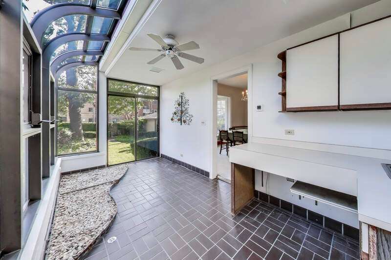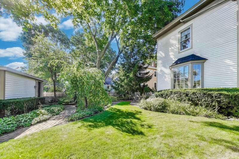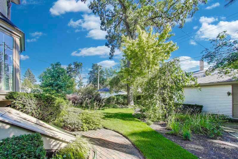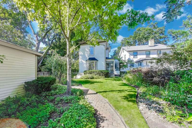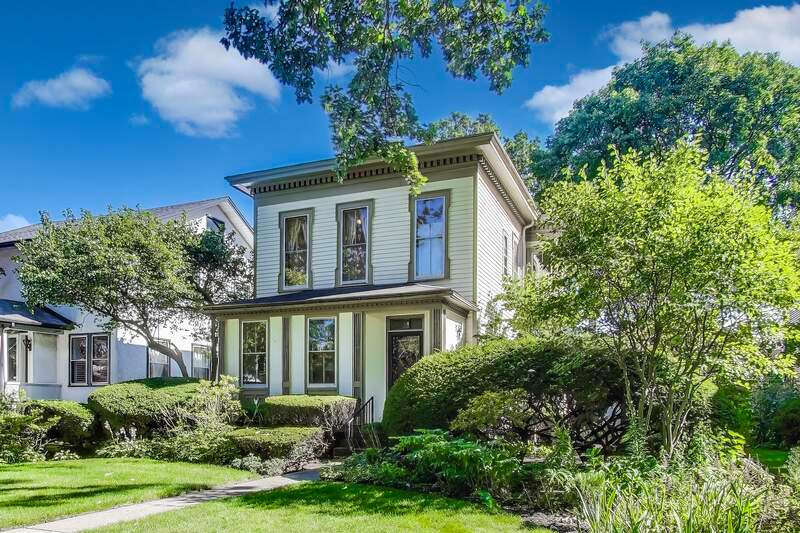 MULTIPLE OFFERS RECEIVED. Best offers due Mon 9/8 by noon. Situated on a thoughtfully landscaped lot facing Howell Park and just one block to the Central Street business district, this home has been lovingly maintained by the same owners for 60 years. With 10'+ ceilings on both the first and second floor and oversized windows throughout, the sunlight streams into each room. As you enter, the dramatic staircase is a focal point with the original bannister and hallway that leads to the first floor den, large living room with bay window and fireplace and eat-in kitchen. Along the back of the home are the entertaining sized dining room plus an enclosed solarium for the avid gardener. The second floor offers four bedrooms including a primary suite and three additional bedrooms with hall bath. The lush, landscaped lot features perennials in bloom every season, a charming paver pathway and access to the 1.5 car garage. This home has been well cared for and is awaiting your ideas to usher in its next era. Just 1 block to the Central Street shops, restaurants and parks and 2 blocks to the Metra station. The neighborhood is known for its day-long block party every August and progressive dinner in the winter/spring. Welcome home!