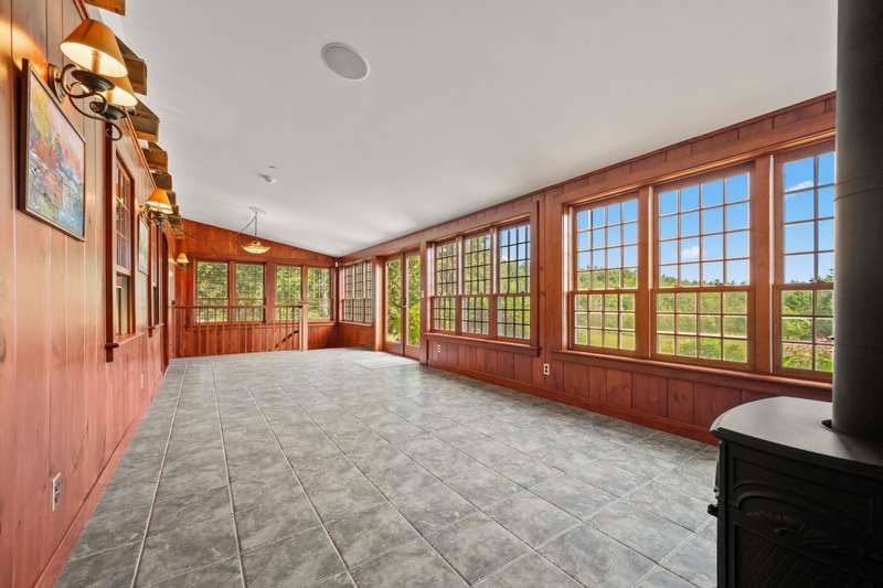 30 +/- Acres-Step into a country lifestyle where old charm meets updated comfort. 1830’s cape, expanded with a heated 3-car garage and spacious primary suite with fireplace, office, full bath above. Whether it’s animals, gardening, skiing, biking, cars, or snowmobiles, there’s room for all your hobbies and gear. Enter to granite floor foyer with laundry-practical north country living. Living room with wood floors, wood insert fireplace—this room speaks to gathering and swapping stories with friends over a glass of wine! Dining room leads to a renovated galley kitchen. Another room abutting with fireplace could be used as a larger dining room or space to expand the kitchen. Tiled sunroom with gas stove, windows are plentiful with natural daylight leading your eye to the handsome hardscaping, private yard and then beyond to large swimming pond and one one-room cabin to retreat to. Finished basement with tile floor, rec room, 3/4 bath, home gym. Utility room is spacious, with plenty of storage and state-of-the-art systems. Upstairs on this side is another en-suite and bath, 2 other bedrooms, and a bath. The magic continues—an impeccably kept 1900’s barn with stables, the pond, cabin, open fields, woods, and a 7-person hot tub under the stars and outdoor shower! New septic in 2020. Littleton is close by for larger services and conveniences, Cannon Mountain, Franconia Notch, abundance of recreational opportunities, and country living never looked so good! Current Use Tax Status.