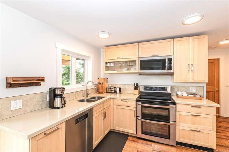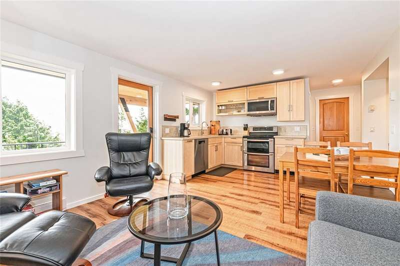 Truly move-in ready, this immaculate ocean view home offers wonderful flexibility with two bedrooms and one bathroom on each level. Enjoy the ability to live entirely on the main floor with valuable work, or self-contained guest space below accessed from a private exterior entrance. The updated, clean aesthetic will appeal to those looking for a low maintenance lifestyle and the close-to-town location provides mid-island convenience with town amenities just a minute drive away (or a 20 minute forest trail walk), and beach access within a 7 minute drive. This contemporary home offers additional driveway parking, ample storage via attached storage room, two hydro meters and easy care grounds. Book an appointment to view this lovely home today.