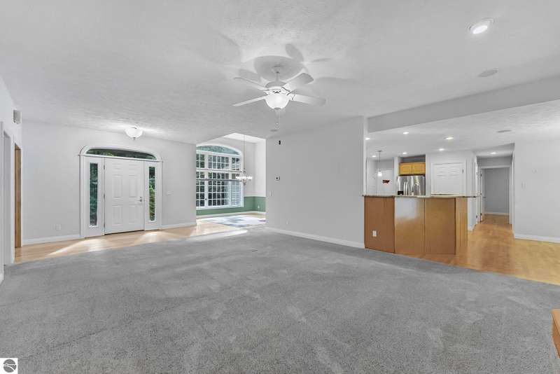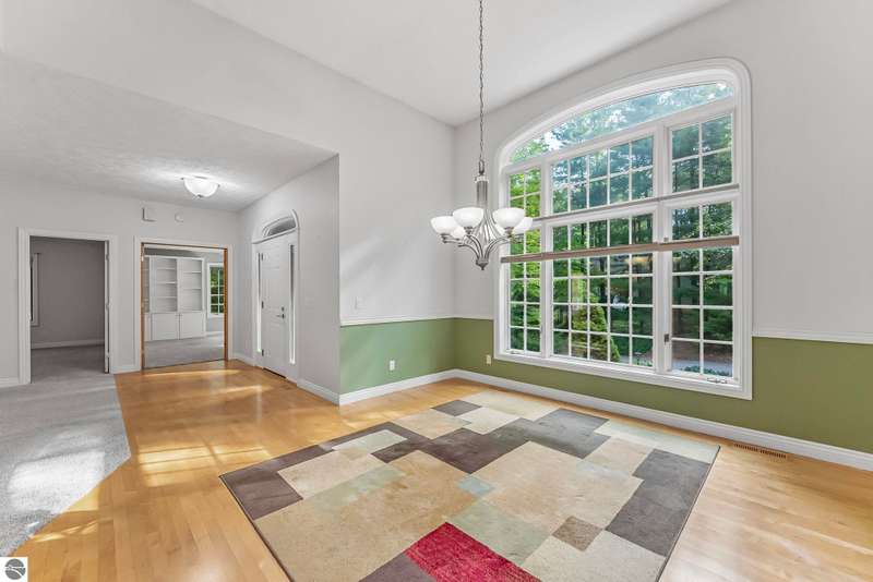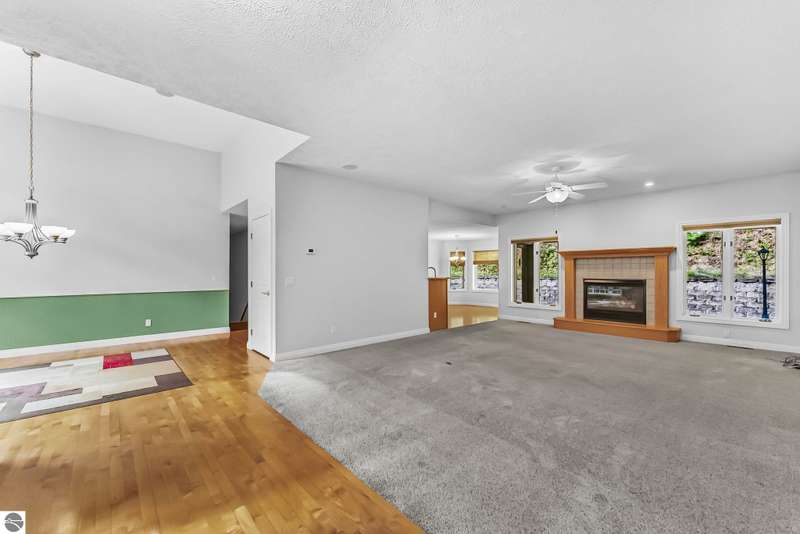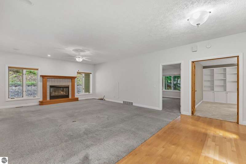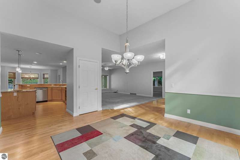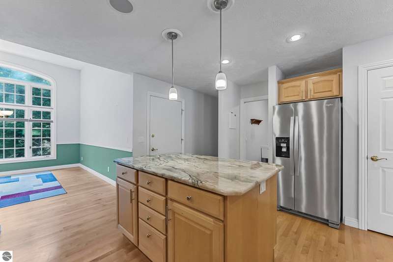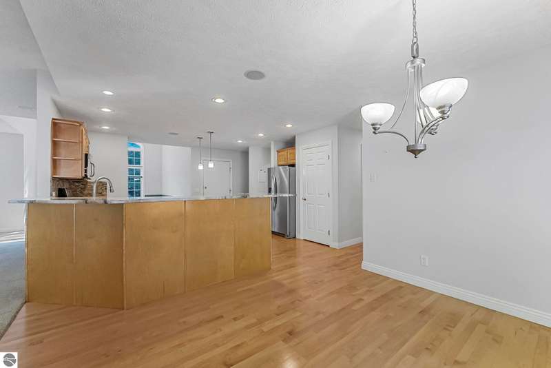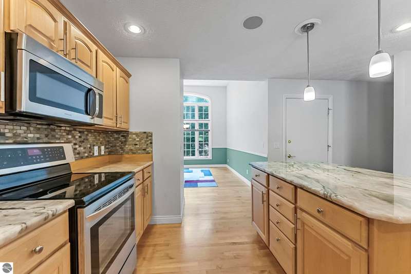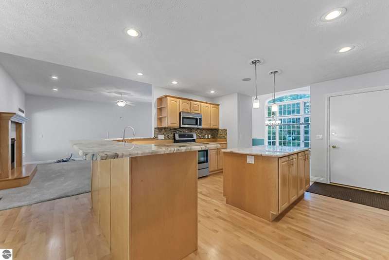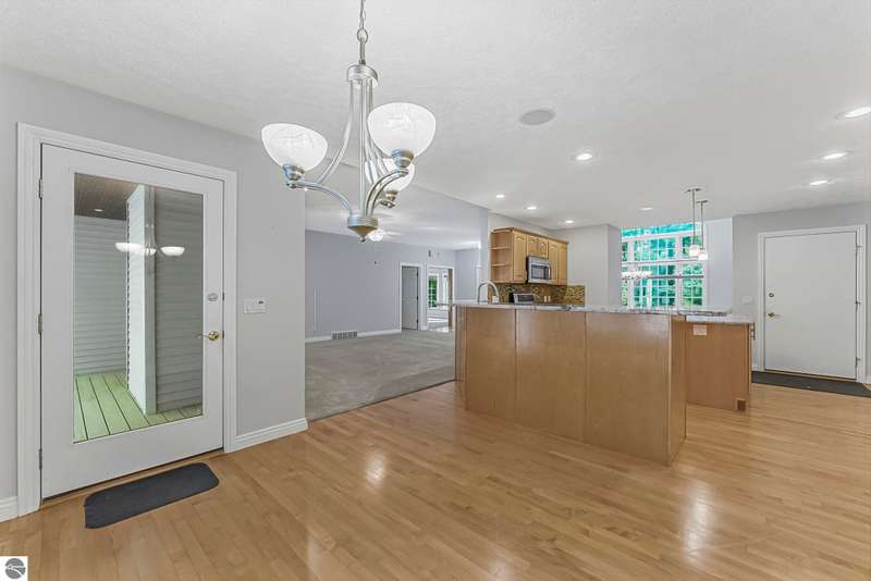 This stunning home spares no detail! Spacious home features 3 bedrooms, 2 baths, Main floor living conveniences, natural gas fireplace accents the gracious living room, large island kitchen layout with breakfast nook and access to rear covered deck, Granite c/tops, pantry and wood floors. Primary suite with walk-in closet and well-appointed bath including Jacuzzi tub and tiled walk-in shower. Main floor laundry room and family/den room. Full unfinished walk-out lower level with daylight window, 9 ft. ceiling and plumbed for bath. Attached 2 car garage. Attention to detail inside and out with lovely grounds and mature trees provide your own private oasis. Easy access to Vasa trail, Tart trail and Mt. Holiday and beaches close by.