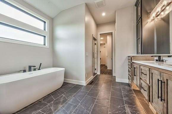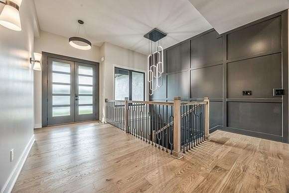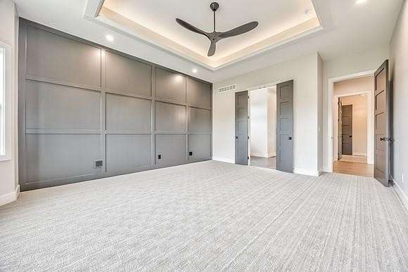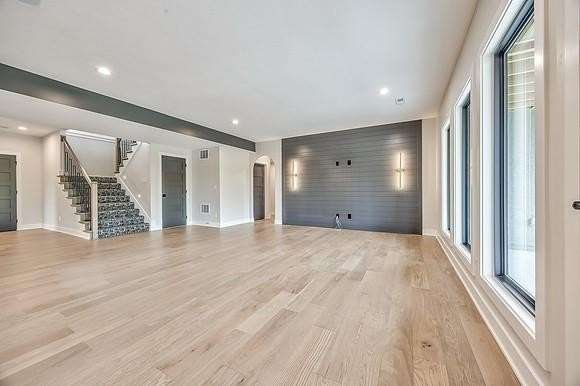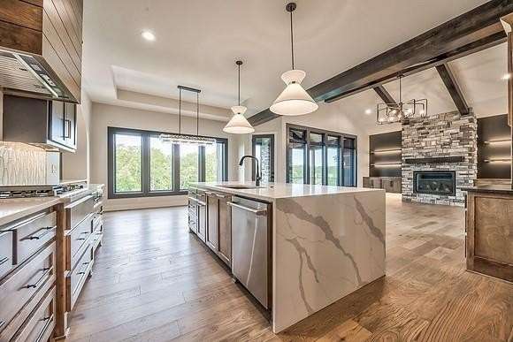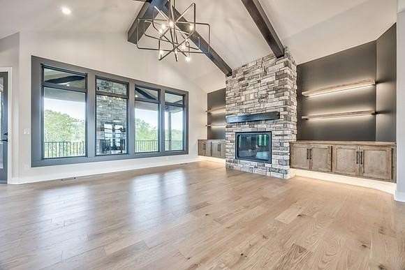 Wheeler Homes presents the Bayview Reverse on lot 77 in Wild Horse! This stunning reverse 1.5 story home sits on a walk out lot at the end of the cul de sac. The amazing plan showcases an open concept, main floor living in luxury. The great room boasts vaulted ceilings, a custom ceiling beam, built in shelves, and a gas fireplace. The gourmet kitchen is perfect for entertaining, complete with a large island, built-in appliances, custom cabinets, and an expansive walk-in pantry. Enormous covered deck perfect for hosting. The main level primary suite offers a soaker tub, a walk-in shower, generous closet space, and convenient access to the laundry room. Oversized 4 car garage. The walkout lower level showcases a full bar opening to the spacious family room. Two additional bedrooms accompanied by 2 full bathrooms. Scheduled for completion in 2026, this home offers the perfect opportunity for buyers to make some selections. Wild Horse is in the award-winning Blue Valley School District, walking distance to Wolf Springs Elementary and the brand-new Wolf Springs Middle School opening in 2026. Don’t miss your chance to own in one of the area’s most anticipated communities! Close to Bluhawk shops and easy highway access. Optional finishes shown in the photos.