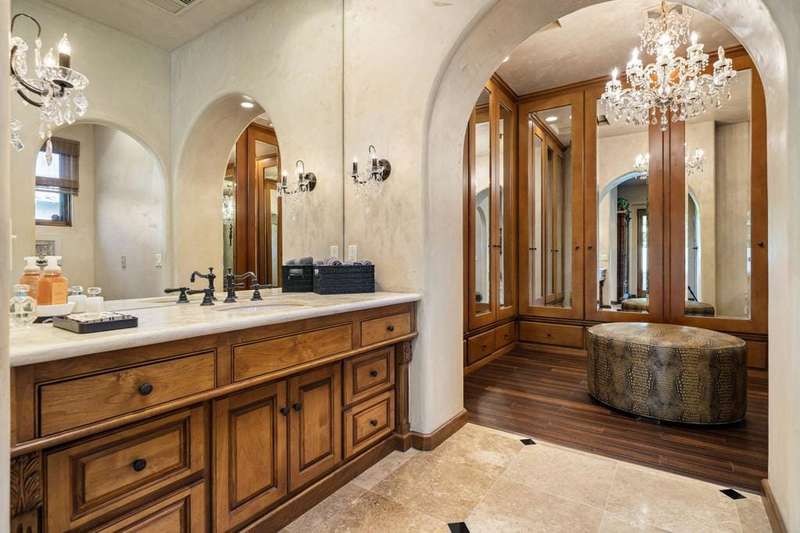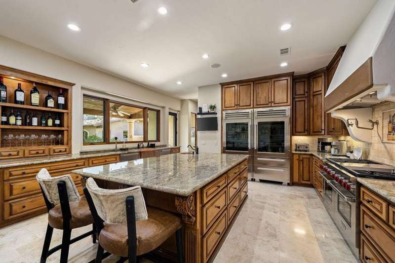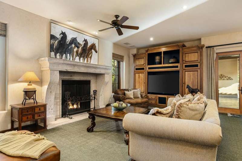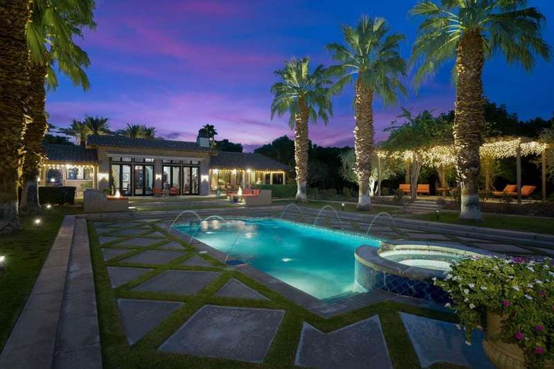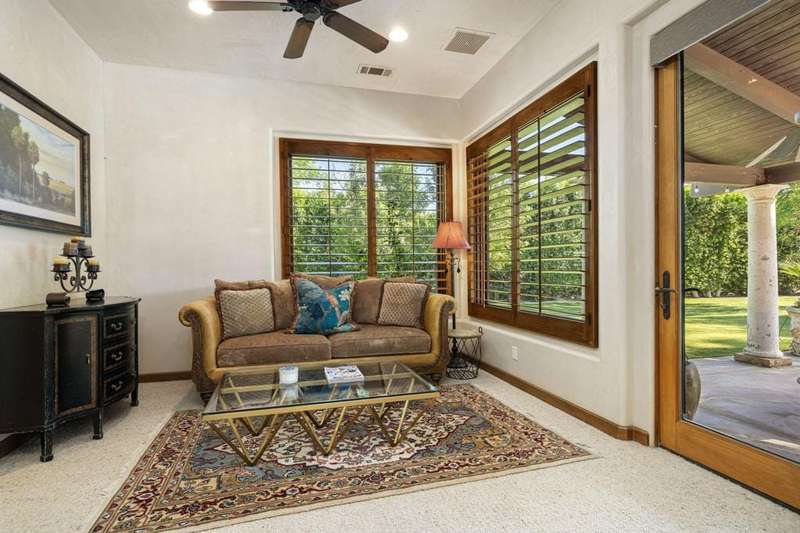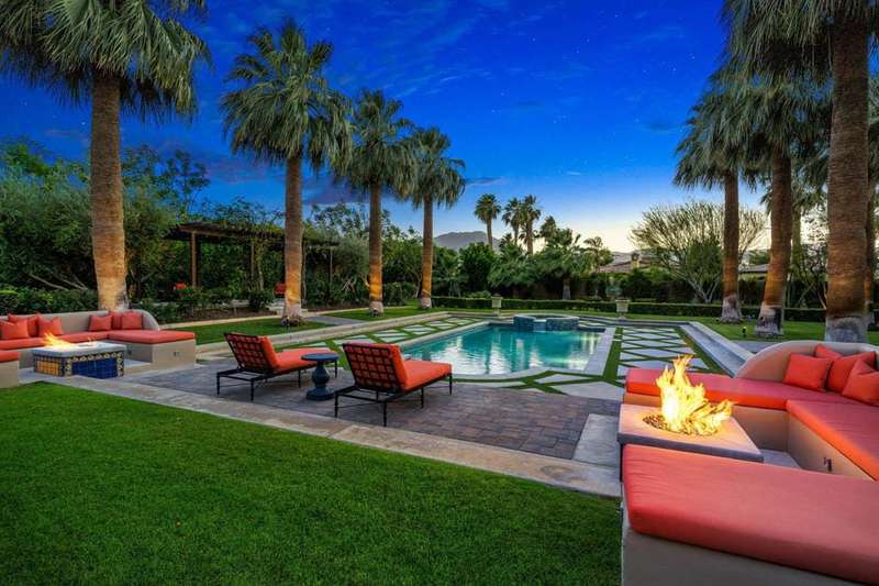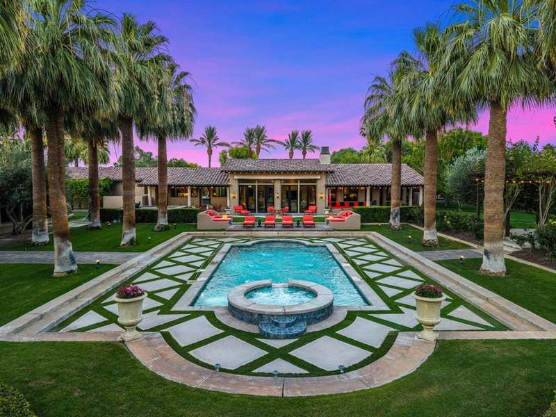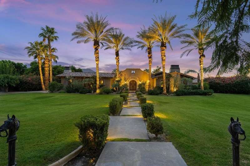 Imagine entering through a majestic, gated entry lined with towering Palm Trees to an extraordinary Estate that exudes unparalled luxury and exquisite style. This Elegant Spanish residence is known as Casa Del Sueno or Dream House, a tranquil luxury Estate located in the exclusive gated enclave of La Quinta Polo Estates. Meticulously kept, the property blends Old World Charm with modern elegance, and offers breathtaking views of the Santa Rosa Mountains, expansive indoor/outdoor entertaining spaces and resort-style amenities including a sparkling pool & spa surrounded by swaying, majestic palm trees, two custom stone firepits with built in cushioned lounge seating adjacent to a two bedroom guesthouse & grand outdoor living room with custom stone fireplace to enjoy evenings under the stars. Casa Del Sueno is set on over 2 acres with sprawling lawns, stone walkways, lush, verdant landscaping, mature shade trees, an orchard, garden, vibrant bougainvillea & tropical plants, grape vines over pergolas which creates an inviting & serene oasis. This home is designed to offer ample space with multiple outdoor terraces, 3 guesthouses, cozy media room w/fireplace, bar & wine cellar. An expansive covered outdoor loggia and enchanting fountain as the centerpiece connects the guesthouse & media room to the main house, perfect for evenings relaxing in front of a crackling fire while playing billiards or lawn games surrounded by romantic hanging lights softly illuminating the area. This exquisite Estate offers 5 bedrooms w/ensuite baths, 7 bathrooms, chef's luxury kitchen perfect for effortless entertaining, butler's pantry, an elegant living room w/massive stone fireplace & floor to ceiling walls of glass and French doors that opens to a grand terrace & outdoor dining room/living area w/seating for 30+, outdoor kitchen, BBQ, & Poolside Bar. The master suite is a true retreat with 2 bathrooms, dressing room, living room and provides incredible views of the lush grounds & shimmering pool with French doors to a private covered terrace. This exceptional property includes superb architectural elements & sumptuous furnishings throughout. Adjacent to Eldorado Polo Club, the Hideaway & Madison, this hidden gem offers a Magnificent setting with spectacular views that provide a stunning backdrop to unwind & enjoy the beauty of the desert. This is a priceless opportunity to own a special piece of the Polo Estates, the finest real estate in La Quinta the Desert has to offer.