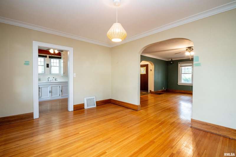 Welcome to this delightful 3-bedroom, 1.5-bath home, nestled in a welcoming neighborhood known for its convenient location near restaurants, schools, and parks. Step inside to find beautifully maintained hardwood floors that run throughout, creating a warm and inviting atmosphere. Classic touches like arched doorways, spacious living and dining rooms add timeless character to the home. The cozy and functional kitchen includes a pantry and all appliances—making it truly move-in ready. You'll appreciate the ample closet space and generous storage throughout. The partially finished basement offers flexible options for a family room, rec room, home gym, or office—tailored to your needs. Outside, enjoy a privacy-fenced backyard ideal for gardening, relaxing, or entertaining. Unwind on the cozy patio or gather around the fire pit, perfect for breezy Autumn evenings. This home is filled with charm, warmth, and character—come make it your own SPECIAL PLACE!