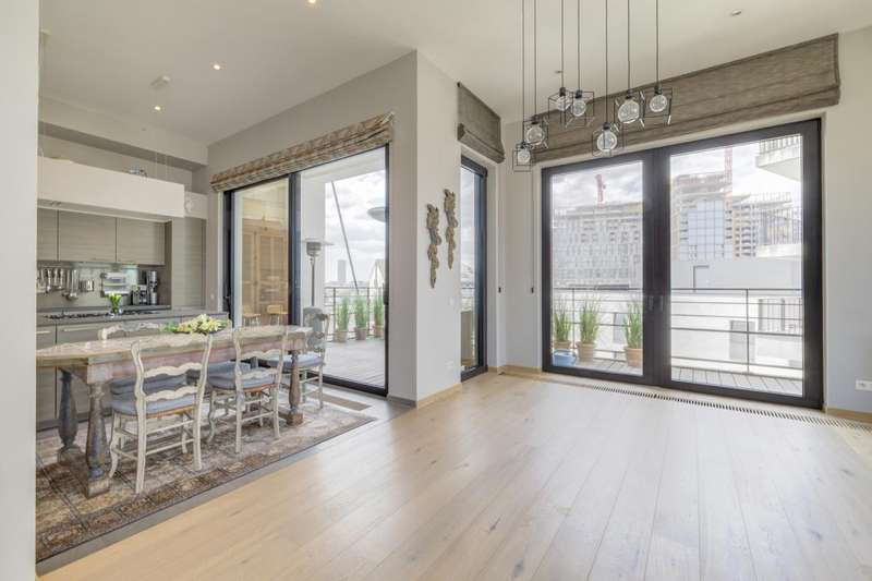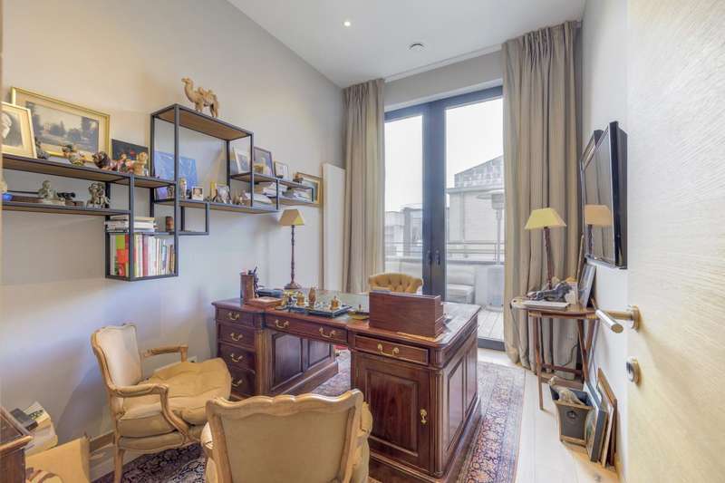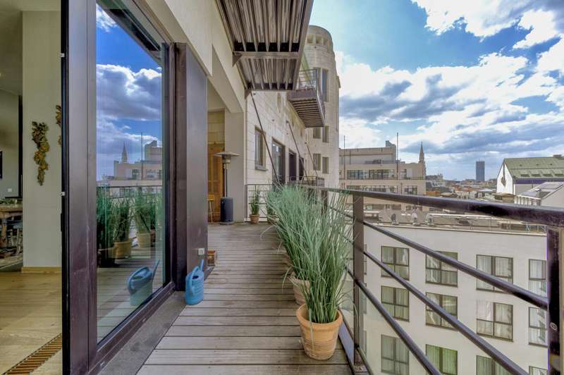 In the prestigious Sablon district, a stone's throw from the Grand Place, this splendid apartment of ± 210 m² is located on the 5th floor of an emblematic building - the former CGER buildings - completely renovated in 2015. Bright and sophisticated, it charms from the moment you walk in with its spacious living room with gas fireplace, high ceilings and large terrace offering panoramic views of the city. The sleeping area offers a master suite with en-suite bathroom, two additional bedrooms, a shower room and plenty of built-in storage. The fully equipped kitchen completes this refined and comfortable property. Two parking spaces (€75,000, compulsory) and a cellar complete this rare property in one of the most sought-after areas of the capital. EPC C.