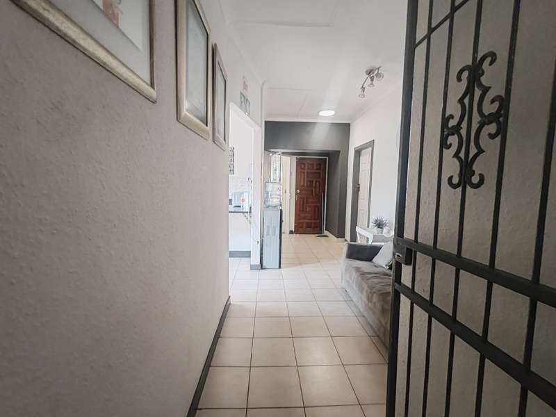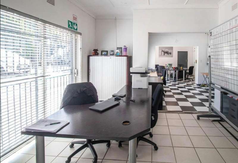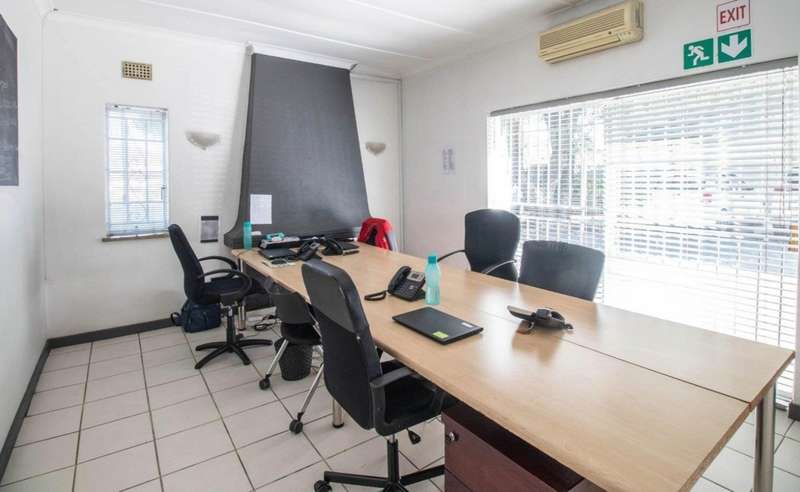This property is on the busy road of 1st Ave Edenvale. Straight opposite the Edenvale courthouse and the Police Station, The one part of the property is run totally separate to the other building. There is an entrance hall with a reception area Plus a board room. 4 offices with air conditioners. Full bathroom with separate toilet. Has its own kitchen and scullery area The other part of the property is set up in two offices One very big one One small one One bathroom One kitchen. On the whole property there are 3 under shade net parking bays and 12 separate parking bays.