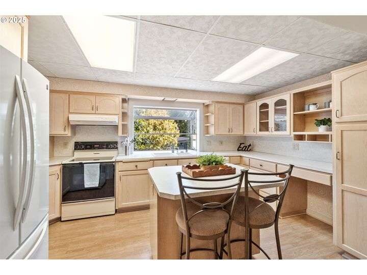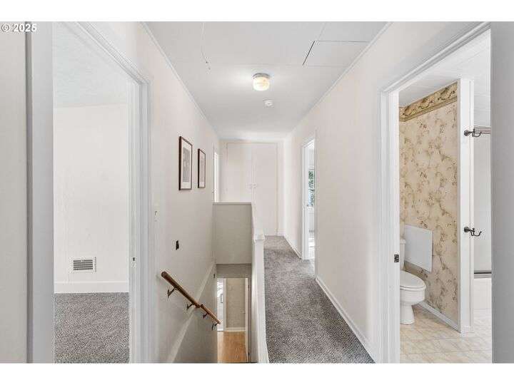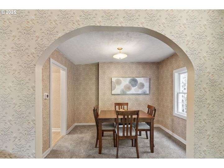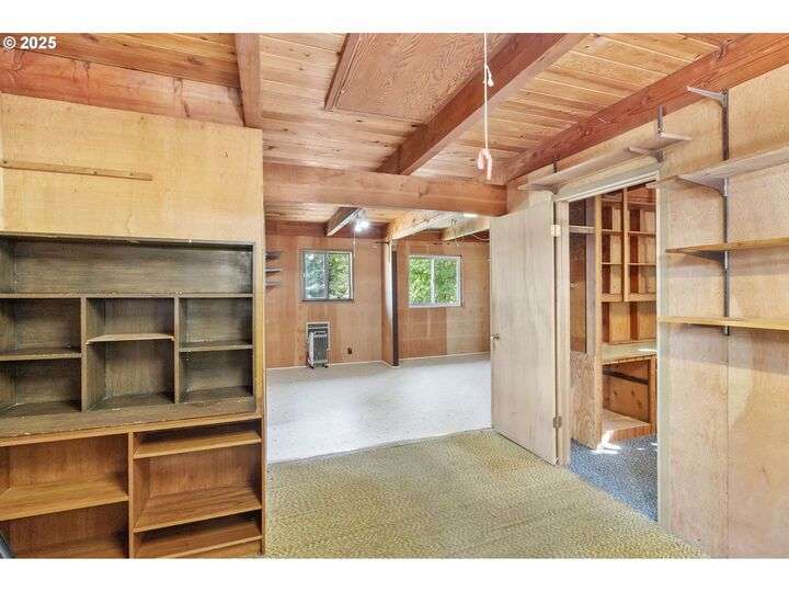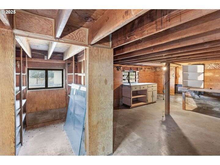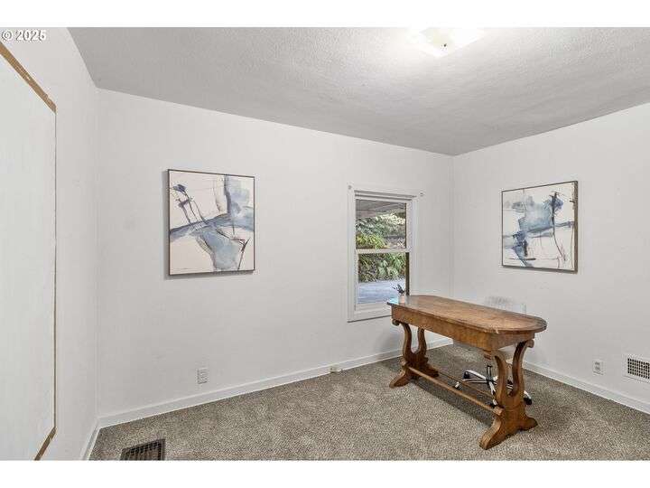Come see this spacious 5-bedroom, 2-bath home on just over a third of an acre in an incredible neighborhood. The home features ducted heating and cooling, a spacious living room with fireplace, and a bright kitchen with island. Wood floors under carpets in many of the rooms, and plenty of wallpaper throughout. A 980 sq. ft. partially finished studio sits on the lot with additional storage space below, plus there’s another tool shed, and the main house has a 540 sq. ft. basement not included in the sq. ft. The large sunny front yard offers garden space, while the backyard is quaint and well-landscaped, creating a private retreat. Tucked away on a dead-end street, this property combines privacy with convenience—just steps from grocery stores, restaurants, and bars. With its size, character, and unbeatable location, this home is full of potential to make it truly your own. South Eugene Schools.