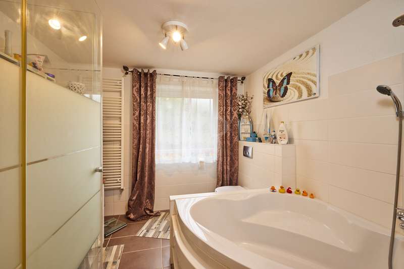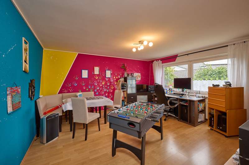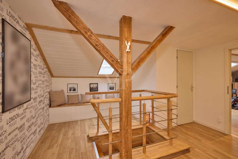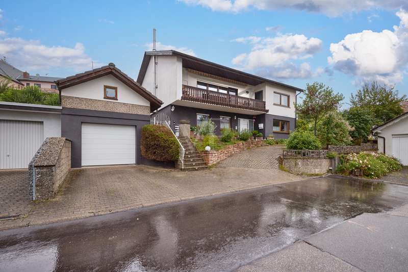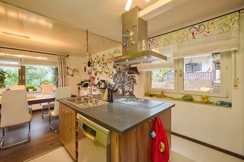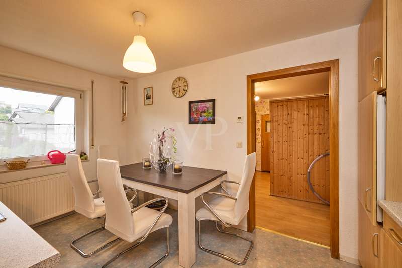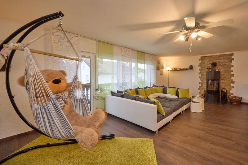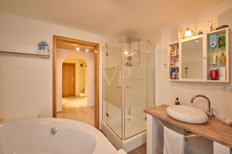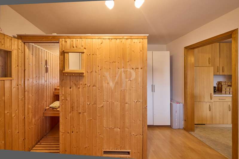 Well-maintained detached house with optional granny apartment in a quiet yet central location in Mosbach/Lohrbach. The entrance area on the first floor is reached via a few steps. The spacious hallway area on this level impresses with its stone tiled floor throughout. On this living level there is a kitchen, a sauna, a generously proportioned study, a utility room and a modern daylight bathroom including a bathtub and shower. Due to the arrangement of the rooms and the separate entrance, this area can also be used as a separate living unit. The living area on the upper floor can be accessed from the outside via the side entrance at the rear of the property. The staircase leads directly into the modern, spacious living room. The living/dining area conveys a cozy atmosphere due to the fireplace placed in the middle of the room, especially in the autumn/winter months. The kitchenette is seamlessly connected to the living/dining area and perfectly complements the open-plan living concept. The balcony on this living level can be accessed directly from the living room and is also equipped with an awning, so that even warm summer months are no problem. There are also 2 spacious bedrooms and a daylight bathroom on this floor. The first floor and upper floor are currently connected by a staircase. The fully developed top floor can be reached via the wooden staircase in the hallway area. This area impresses with a comfortable sitting area, a separate dressing room, which would also be suitable as an additional bedroom, as well as a spacious bedroom. The outside area of the property has a further extension, which is primarily used for storage. There is also a detached building on the property, which houses a workshop and a party room. The upper part of the property with its pool is perfect for warm summer evenings. There is also a playground for children on the side of the property. The good offer is perfectly rounded off by the garage including electric garage door and the additional storage space in the room above.
