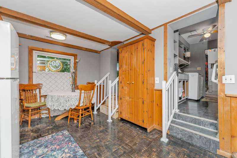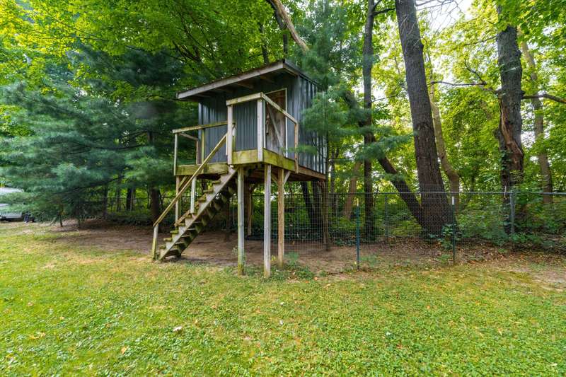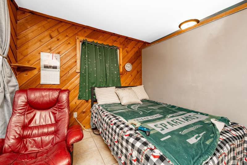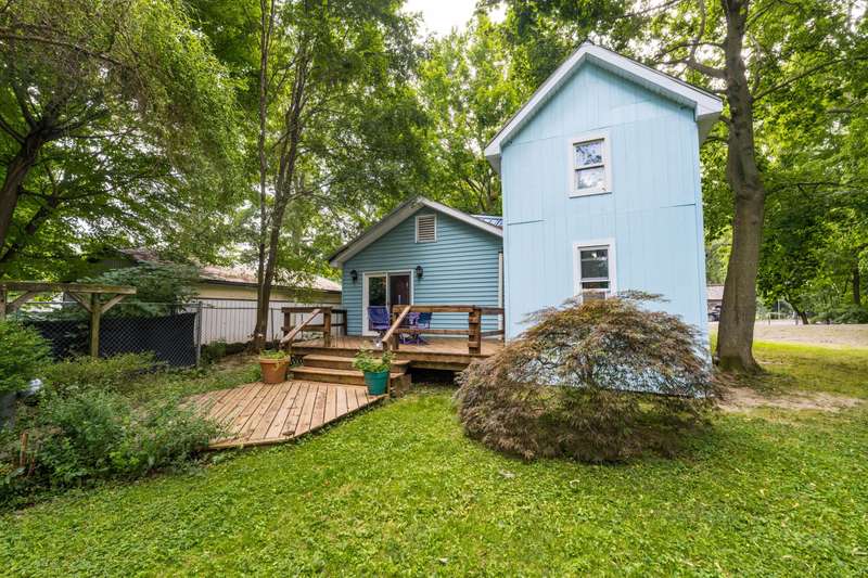 Situated on, just under .5 ACRE LOT, this delightfully quaint home, with a cottage feel, won't disappoint. Entering though the foyer, the cozy and bright living room awaits. The kitchen with breakfast nook and knotty pine cabinetry, is at the heart of this home. Laundry won't be a chore; conveniently located near the remodeled full bath and two joined bedrooms. Just past a spacious sitting/reading room, you'll find the primary bedroom with door that leads to the back deck, overlooking the very deep and very private backyard, complete w/tree house, fire pit and abutting Delton Elementary. Easy commuting with shopping and M-43 nearby. Schedule your showing today!