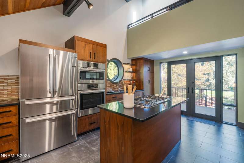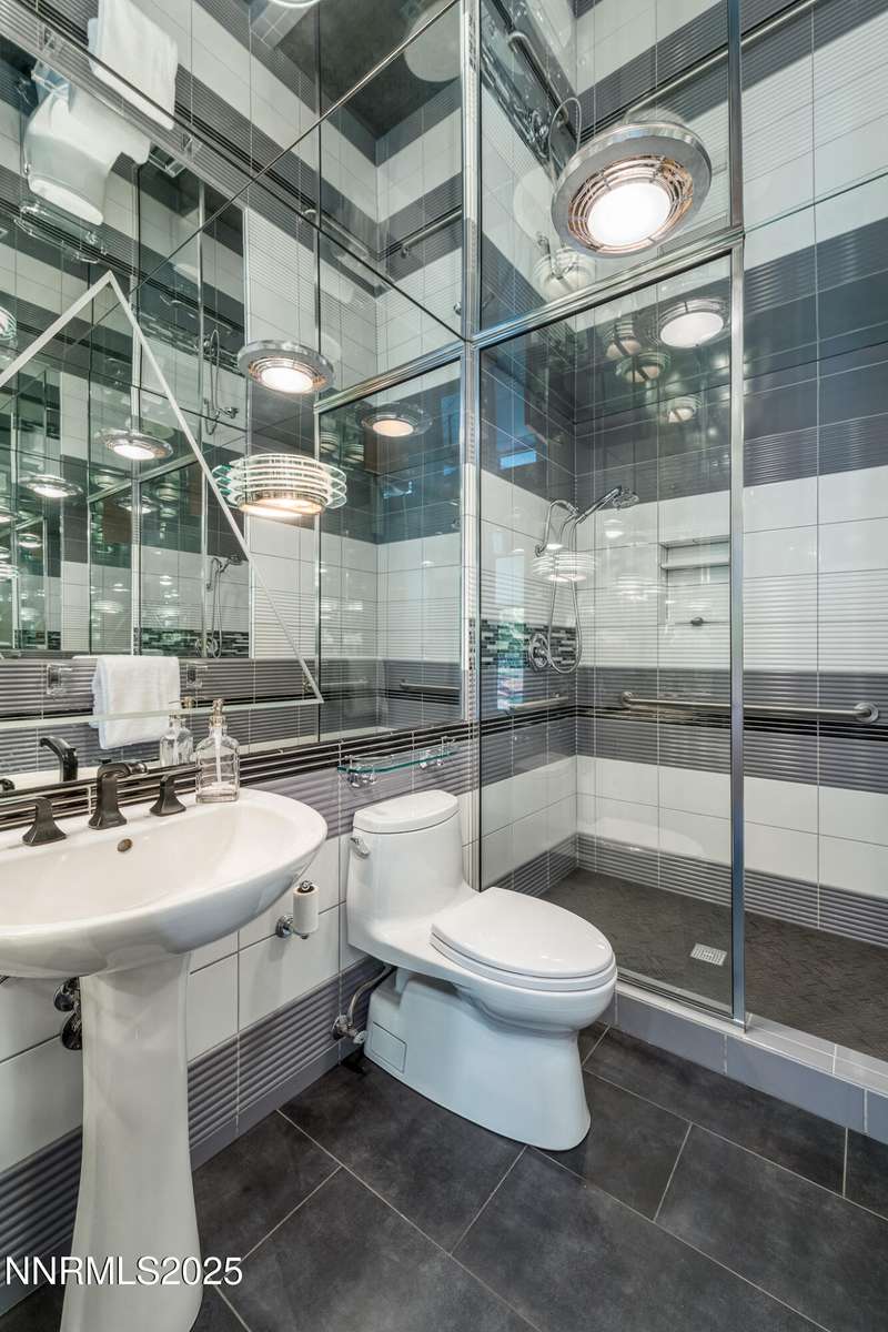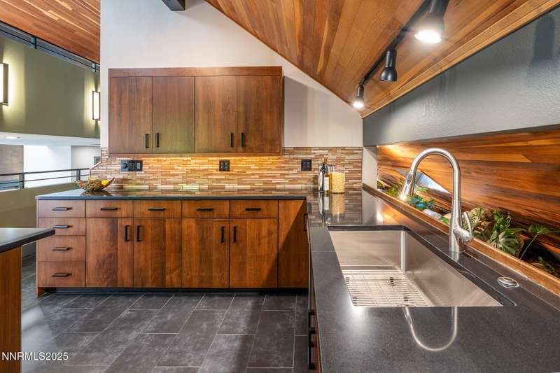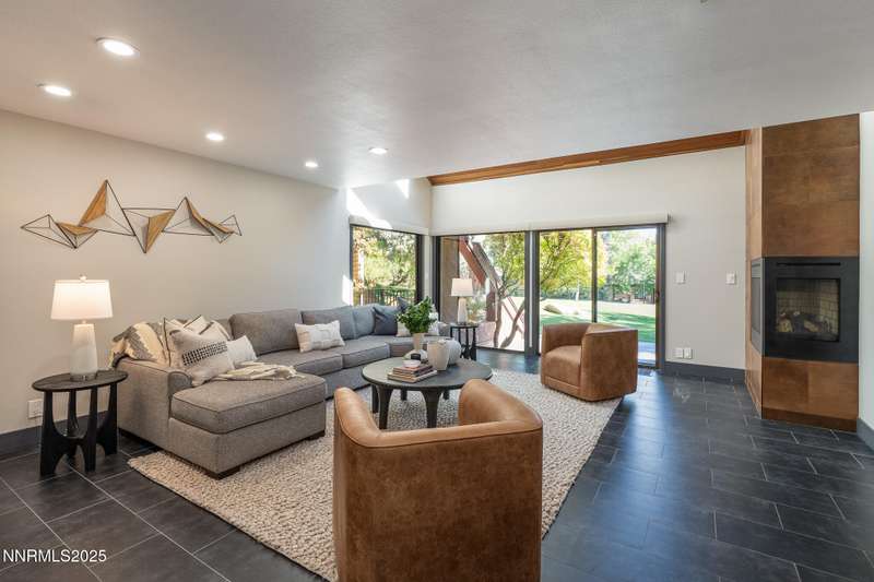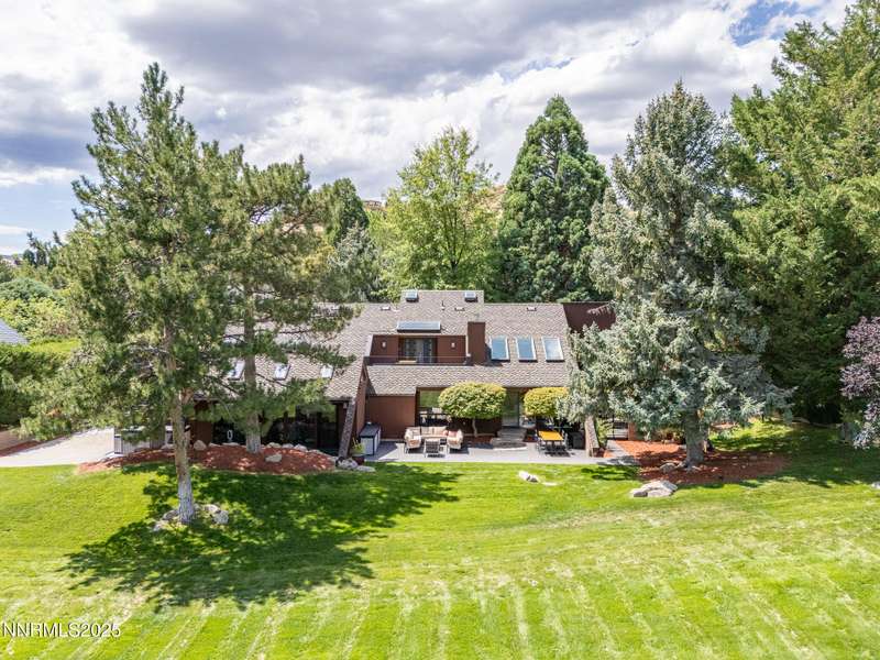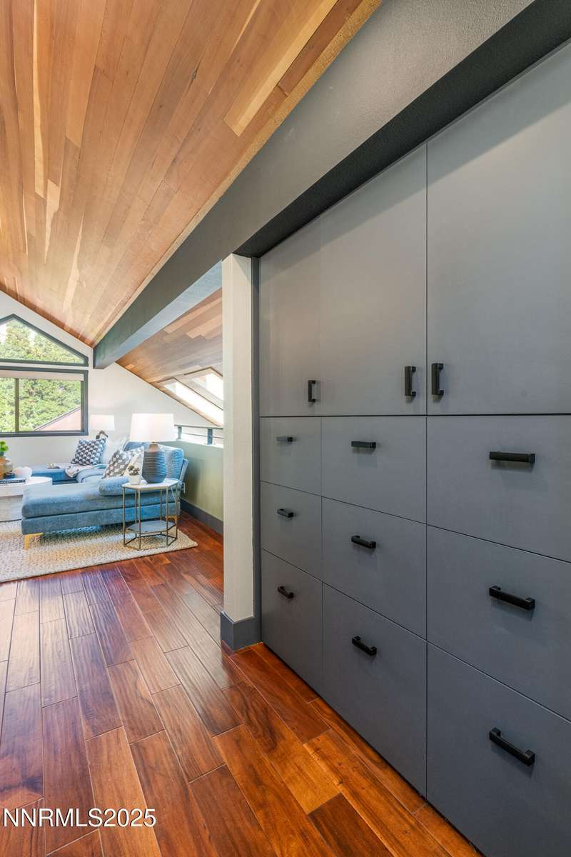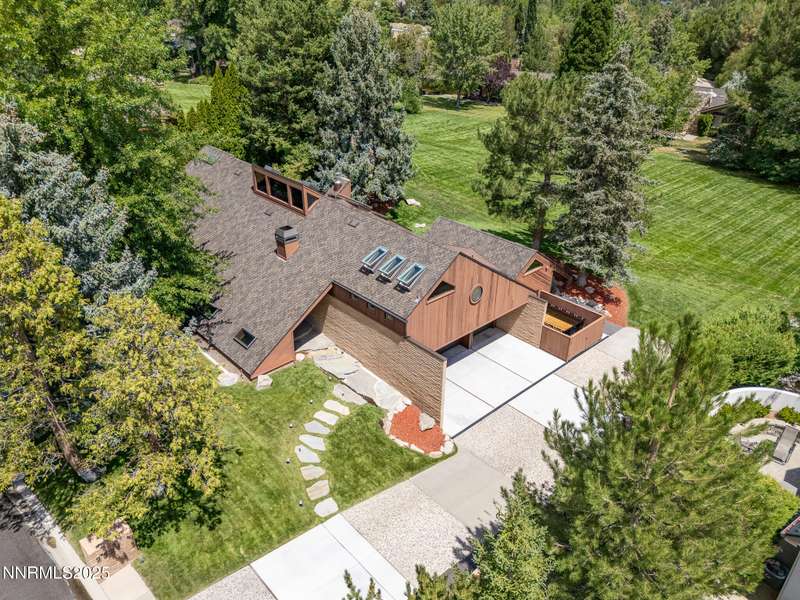 Discover a rare opportunity to own an architectural masterpiece, 1980s award-winning work of art in the highly sought-after Lake Ridge Shores community of southwest Reno. This split-level residence is more than a home - it's an experience - where every angle, finish, and feature has been intentionally designed to delight. Step inside to find a balance of hardwood and ceramic tile flooring, anchored by soaring redwood-finished ceilings that highlight striking architectural lines and flood the space with natural light. A remarkable live green planter with a fountain feature runs the full length of the home, bringing the outdoors in and creating a sense of calm and connection. At the center of it all, the custom kitchen is equal parts functional and striking, with rich wood-finished cabinetry, a coffee or cocktail bar with open shelving, and design accents that invite both creativity and conversation. One of the home's most delightful details—a circular window—adds a sense of whimsy and fun, making this space as unique as it is inviting. The primary suite redefines relaxation. Expansive in scale yet intimate in feel, it is designed as a true spa retreat, where comfort meets artistry. The bathroom's bold architecture and thoughtful finishes are elevated with heated tile floors and towel racks, offering a daily indulgence in warmth and luxury. Every detail—down to the angles, lighting, and textures—was carefully curated for both beauty and function. Additional features include a bonus loft for flexible living, and an attached bedroom or office space perfectly suited to today's lifestyle. The home's smart technology, with integrated Lutron and Hue lighting systems managed at the touch of an iPad, allows for effortless ambiance and personalization. Throughout the residence, multiple sitting areas invite connection and reflection, while expansive windows frame the tranquil greenbelt backdrop—offering ultimate privacy within this prestigious gated community. Here, architecture, nature, and modern living converge into a home that is as rare as it is remarkable.