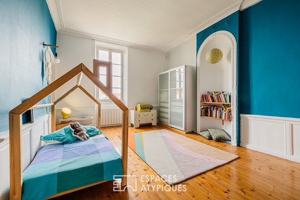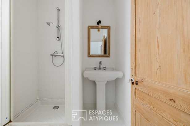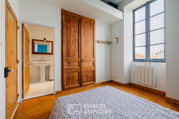 Upstairs, the sleeping area comprises two bedrooms, each with its own distinct charm. The first, majestic, boasts over 20 square meters of space and an en-suite shower room accessible from the landing. The second, more intimate, benefits from a private bathroom.