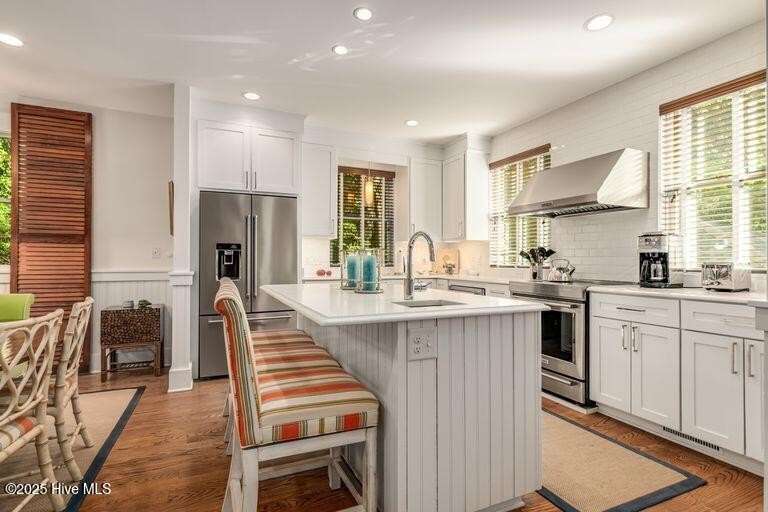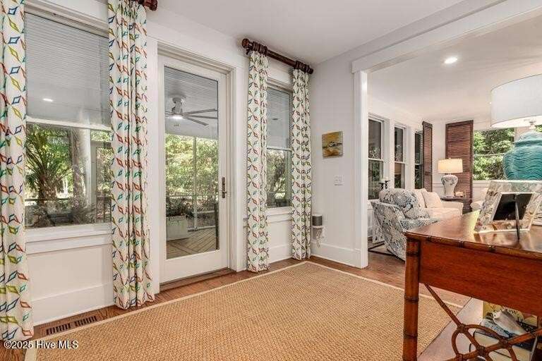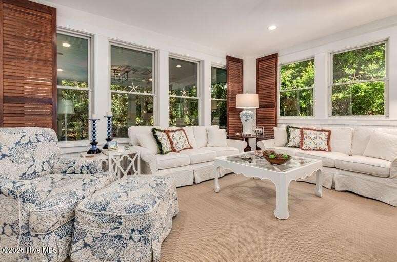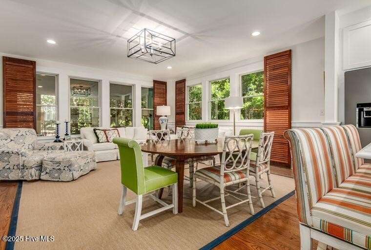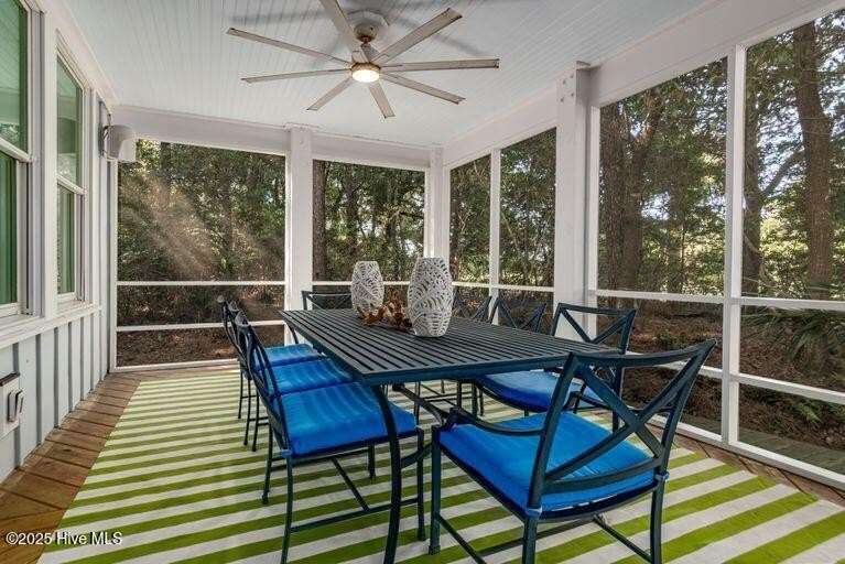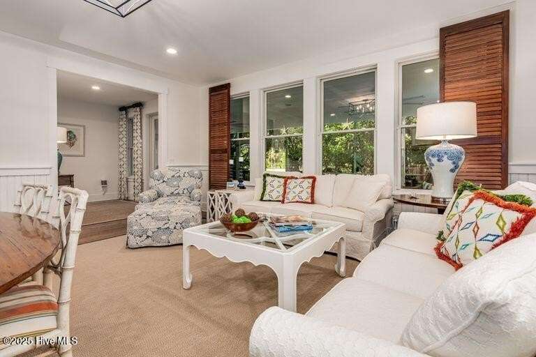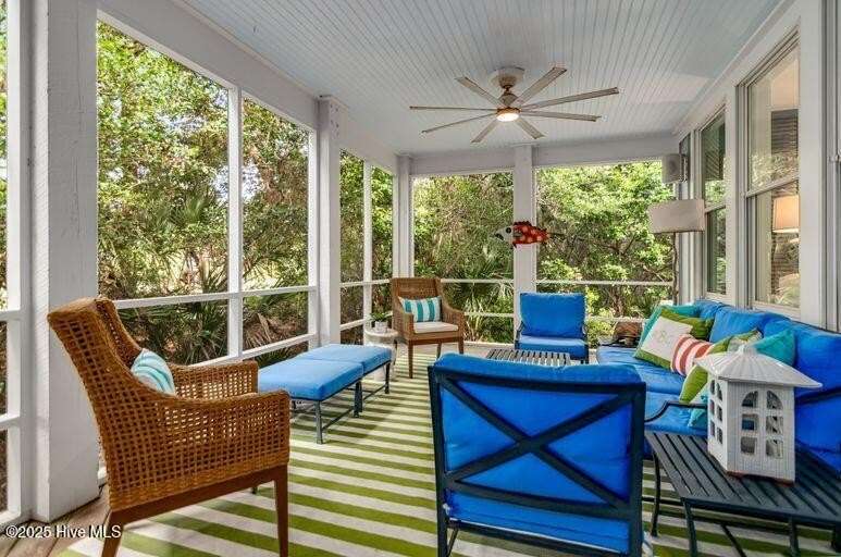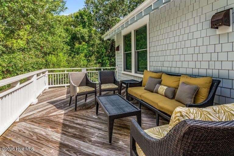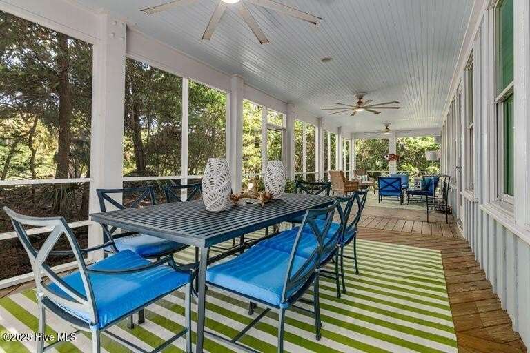 Nestled in the serene maritime forest overlooking the 11th fairway, this beautifully designer-decorated home offers a perfect blend of elegance & comfort. The open-concept living area features stainless steel appliances, solid surface countertops, and a spacious pantry, seamlessly connecting to dining for nine indoors and an inviting outdoor dining space for eight on an expansive screened porch. The screened-in porch is truly a highlight—extra-large yet cozy, it is beautifully sheltered by mature trees, creating a private oasis of peace and tranquility. Whether you're relaxing with a morning coffee, entertaining friends, or enjoying peaceful evenings, this outdoor retreat provides the perfect setting to unwind & connect with nature. The main bedroom en-suite boasts double sinks, a luxurious tub/shower, & a water closet, offering a true sanctuary. Upstairs, four elegantly decorated bedrooms each feature en-suite bathrooms, providing comfort and privacy for guests. The space also includes a charming reading nook & a cozy TV area that open onto a large deck—ideal for sunbathing, gardening, or a fun hangout spot for teenagers and young adults. Additional amenities include a Lifestyle BHI Equity Membership available with separate purchase, a fully furnished home, & two golf carts for effortless enjoyment of the community's amenities.